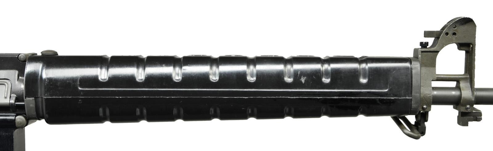 Cal. 5.56x45mm. S# 074325. Bbl. 22", over muzzle device. The elusive T65 was developed by the Combined Logistics Command of the Republic of China Armed Forces in Taiwan as an alternative to the US Military’s M16 in 1976. This was the 65th year of the Republic of China, and this new model was designated T65. Internally it somewhat resembles the M16, with its rotating bolt, however brings the addition of a short stroke piston system to replace the M16s direct gas impingement operating system. The T65 served as the primary weapon system of the Taiwanese Army until being replaced w/ the T91 in the beginning of the new Millennium. The T65 is extremely rare in the United States, rumored in such small numbers to be easily counted for on only a single hand. This example is one of them. Matte black finish on all exposed pieces. Protected post front sight / gas block / bayonet lug. 12.75" Upper & lower 2 piece handguards w/ metal heat shields. Windage adjustable, 2 position rear peep sight. Front & rear, flip up, 3 dot night sights utilizing luminous paint. Center located charging handle similar to AR-15 platform. Raised fence style lower receiver marked on left side of mag. well; "RIFLE 5.56 MM / T65 / 074325". Ambidextrous safety / selector marked; "SAFE / SEMI / AUTO" on both sides. Upper receiver incorporates no brass deflector or forward assist. 10" plastic stock w/ trap door for cleaning kit. Sling swivels front & rear. MAGS: 3 aluminum 30 rd. w/ 15 rd. counter holes on left side. UNATTACHED ACCESSORIES: original A1 style flash hider w/ washer. T-65 bayonet & scabbard. CONDITION: finish is complete & consistent w/ only subtle signs of thinning, primarily on high spots & faint line on right side of mag. well. Handguards illustrate only one tiny impression & stock has no obvious signs of prior use. Magazines & bayonet appear as new. Bore is bright w/ strong rifling. Fire control mechanism appears to function correctly when cycled by hand. PRE-86 DEALER SAMPLE (KEEPER). NATIONAL FIREARMS ACT MG REQUIRING BATF TRANSFER BEFORE TAKING POSSESSION. YOU MUST BE A CURRENT NFA/SOT DEALER IN ORDER TO TAKE POSESSION OF THIS FIREARM. (03-1622/JZ). MODERN. $45,000-65,000.