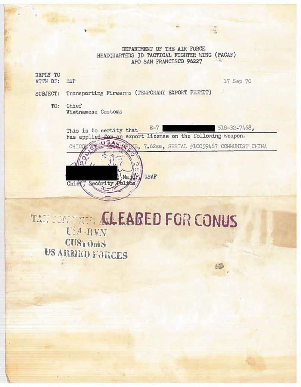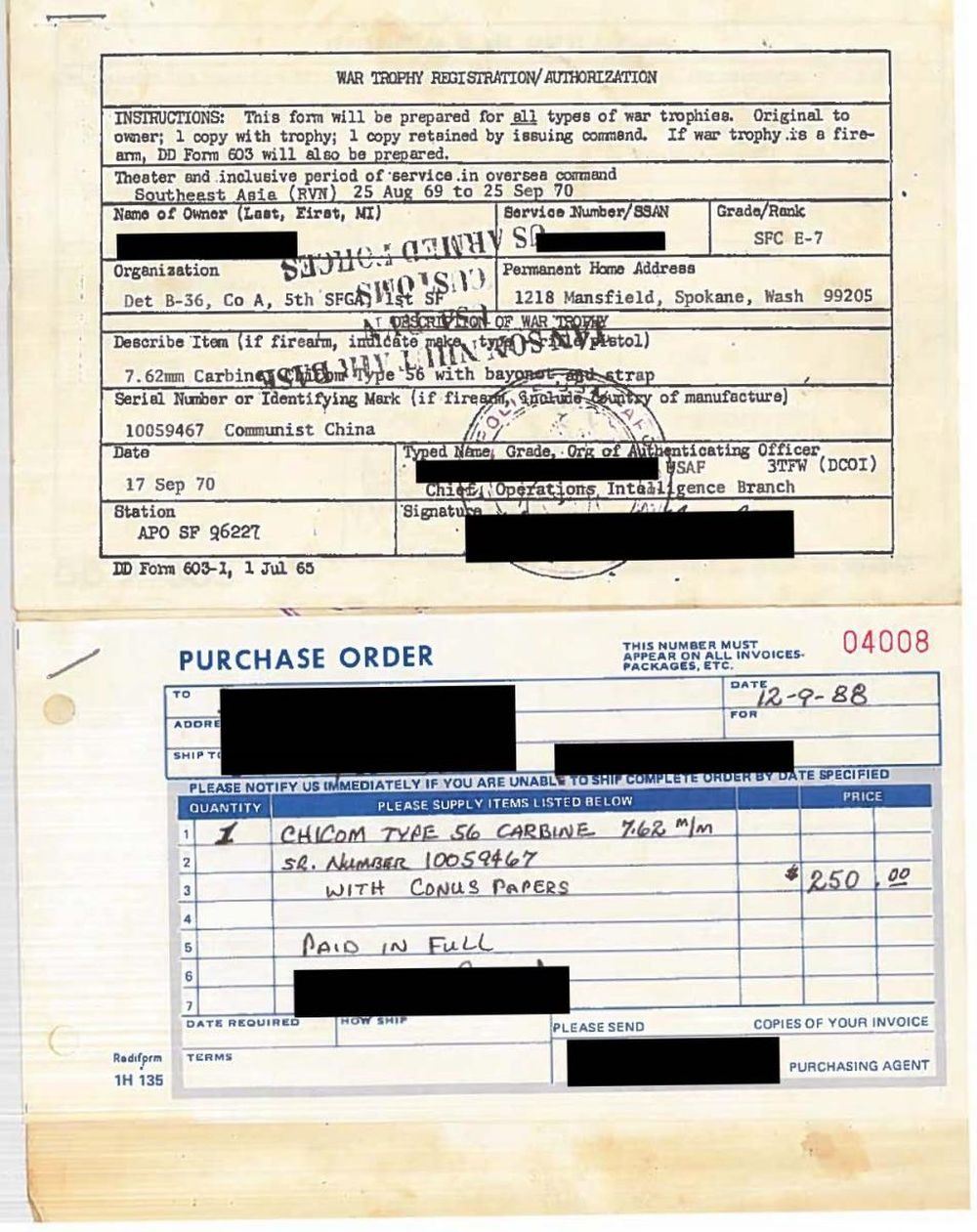 Lot 1230 2 VIETNAM WAR TROPHY FIREARMS WITH CAPTURE PAPERS,