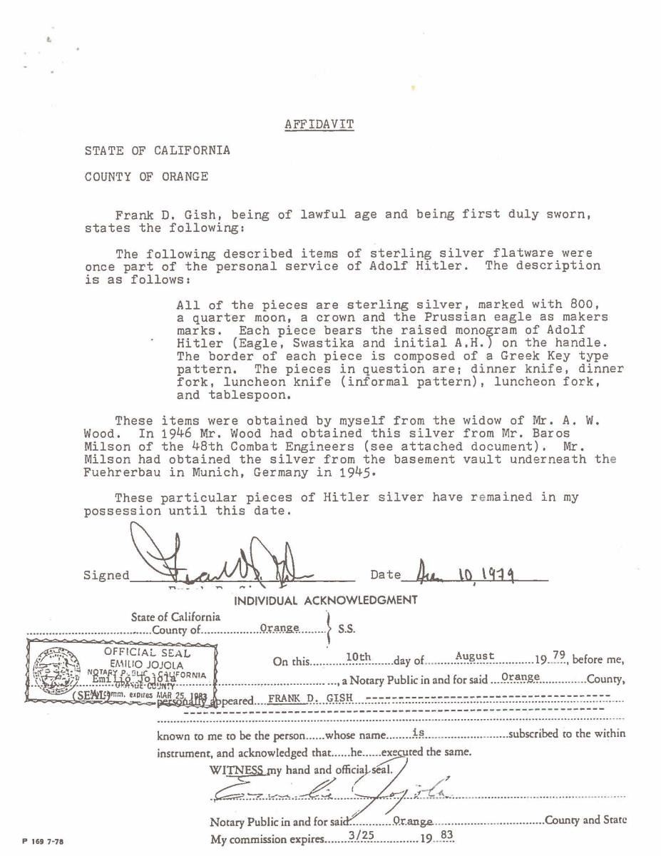 HITLER’S PERSONAL FORMAL SILVER DINNER SERVICE.
