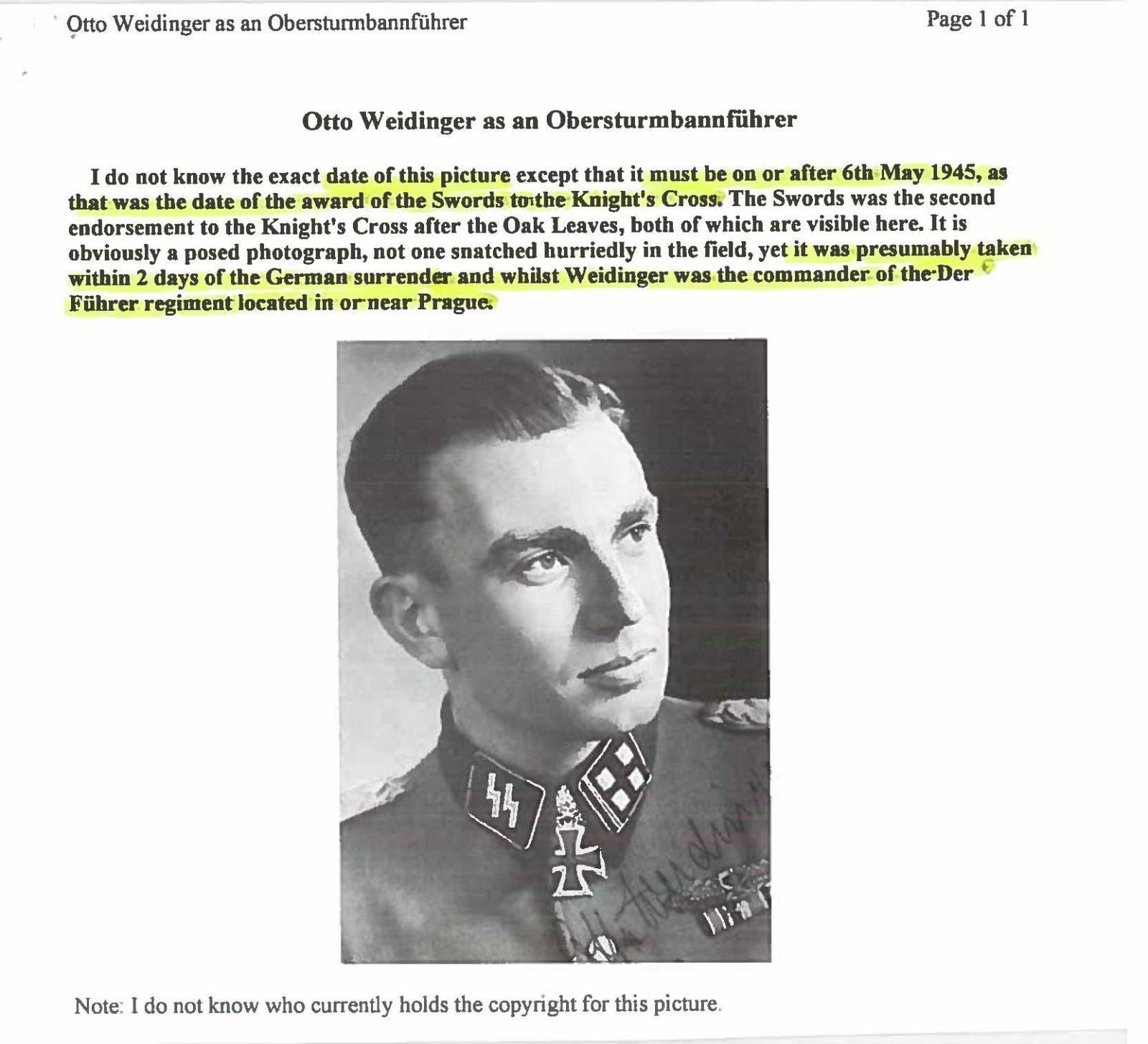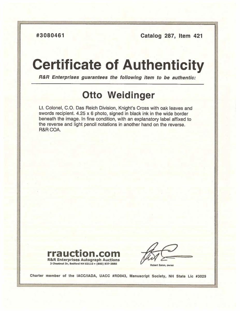 2) A signed photograph of Otto Weidinger with certificate of authenticity and a book by Mark Yerger about Otto Weidinger.