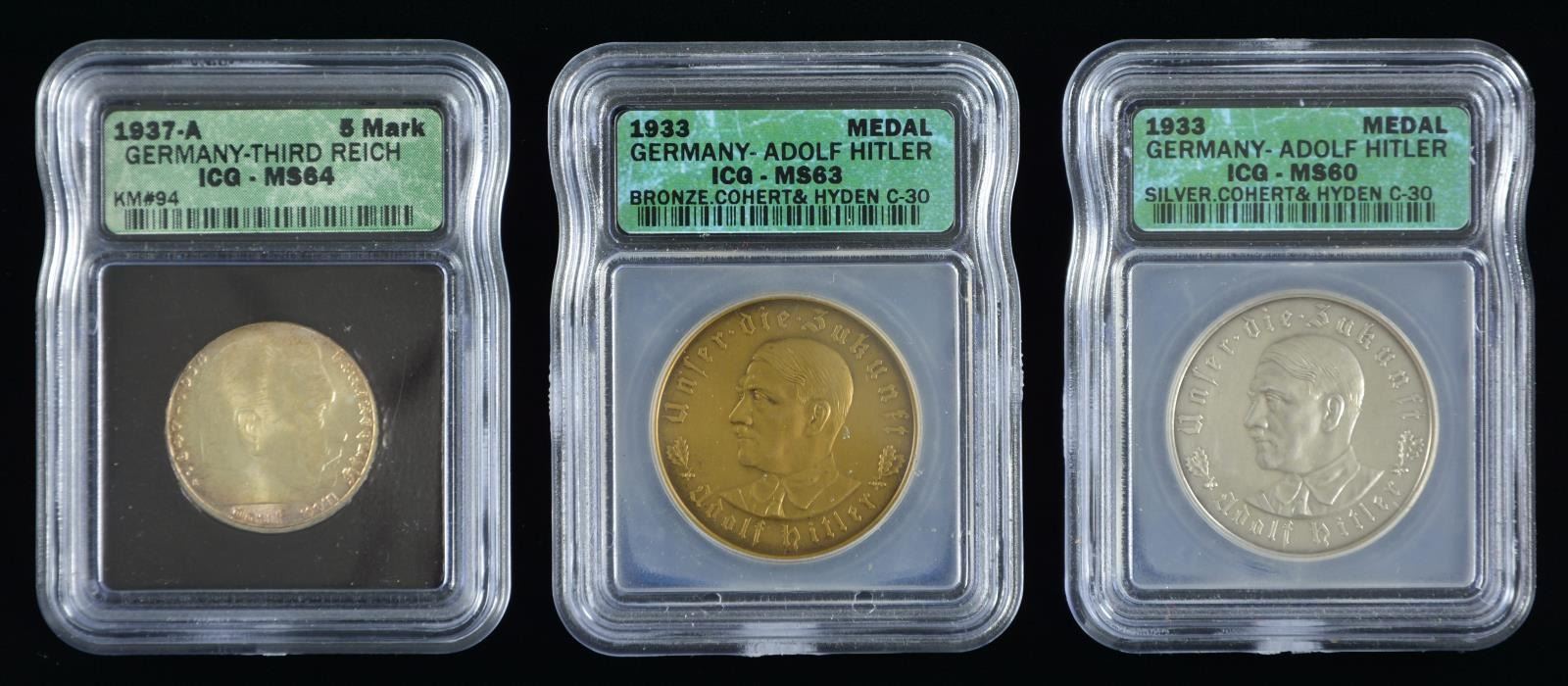 Lot 1346A 3 SLABBED HITLER COINS/TOKENS & A COPY OF “MEIN