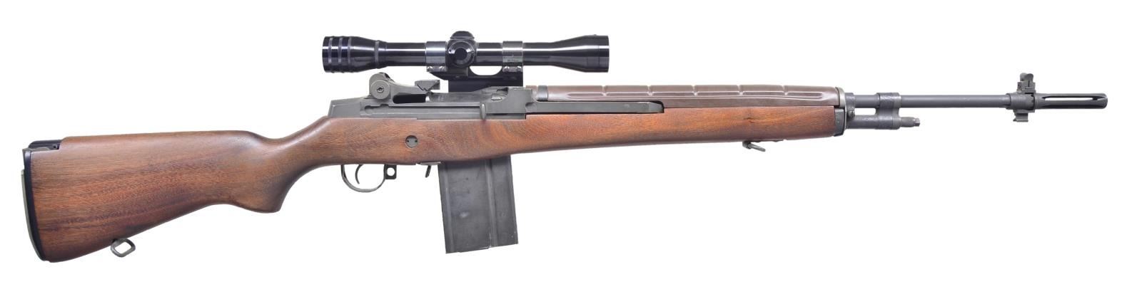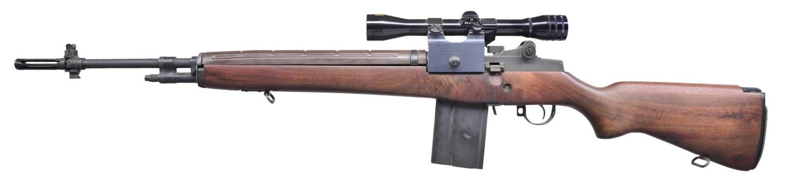 Cal. 7.62x51. S# 038929. Bbl. 22". Parkerized finish barrel & receiver. Dark finished hardwood shoulder stock. Brown plastic barrel shroud. Bassett scope mount currently sporting Redfield 4-Plex scope w/ duplex reticle. Protected post front sight. Windage & elevation adjustable rear peep sight. MAGS: 1 steel 20rd. CONDITION: finish is complete & consistent. Scope glass is clear w/ well defined reticle. Scope exterior illustrates some prior mounting. Bore is bright w/ descent rifling. Fire control mechanism appears to function correctly when cycled by hand. (22-3270/JZ). MODERN.$1,000-1,500.