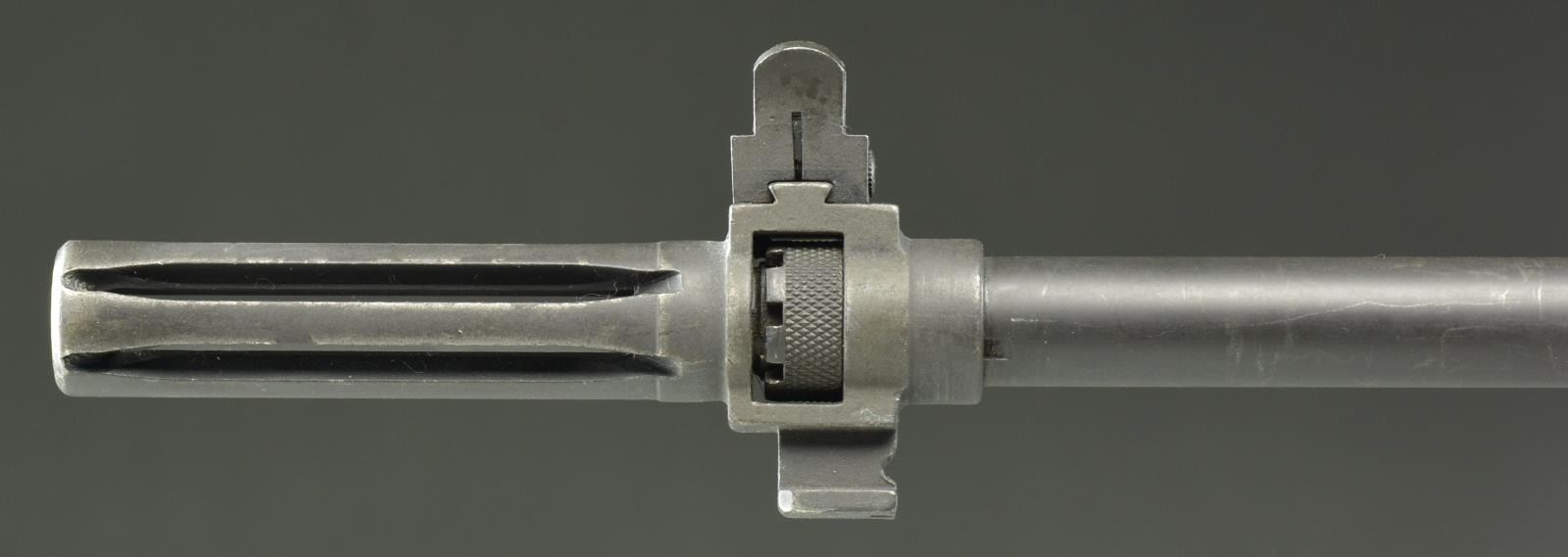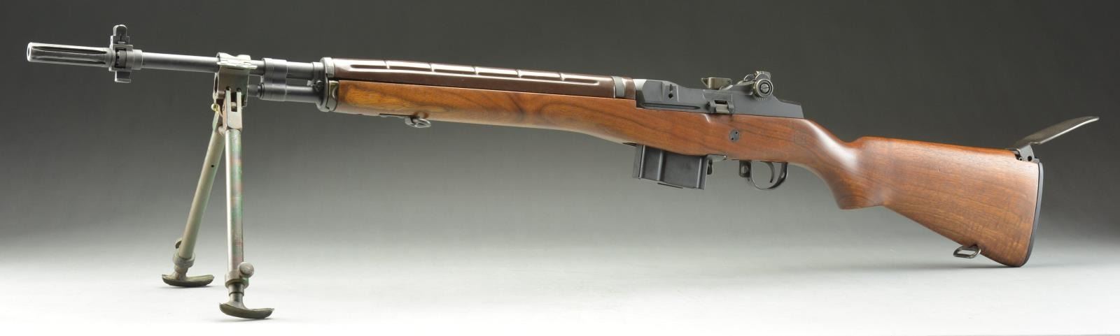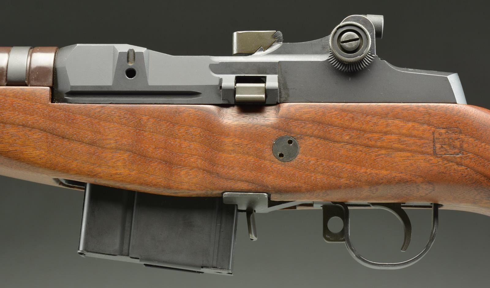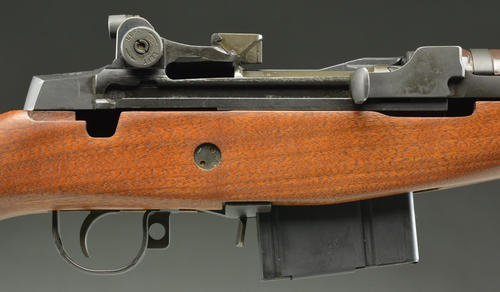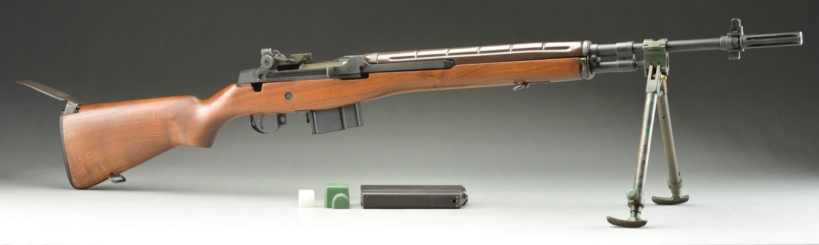 Cal. 7.62x51. S# 092345. Bbl. 22". Parkerized finish barrel & receiver. Dark finished Walnut shoulder stock. Brown plastic barrel shroud. National Match marked, tapered protected post front sight as well as NM marked windage & elevation adjustable rear peep sight. MAGS: 1 steel 10 rd. & 1 steel 20 rd. UNATTACHED ACCESSORIES: 1 steel, extendable, folding bipod. CONDITION: no signs of more than moderate use externally. Finish is complete & consistent. Bore is bright w/ the appearance of lightly worn lands. Fire control mechanism appears to function correctly when cycled by hand. (22-5729/JZ). MODERN. $1,500-2,500.