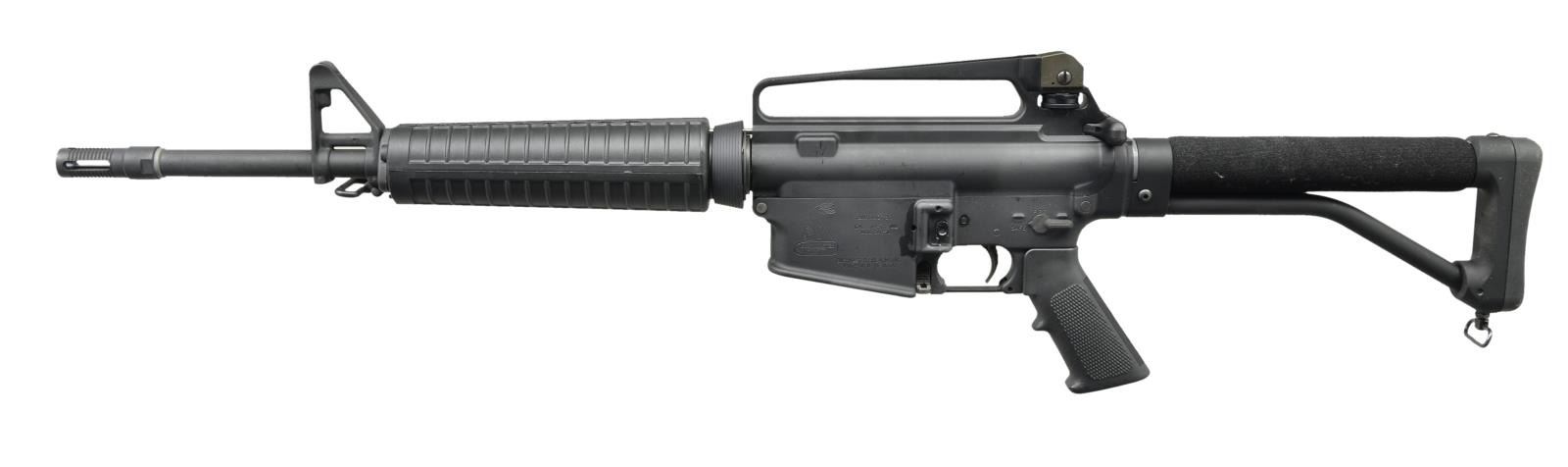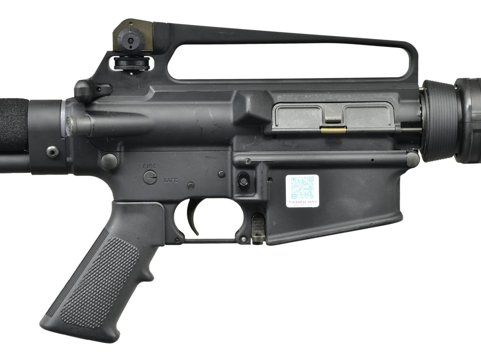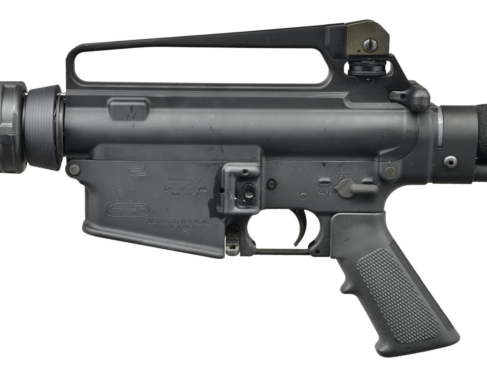 SIGHTS. Cal. 308 Win. S# BAR000783. Bbl. 18" over flash hider. A Windham, Maine mfg. 308 version of the black rifle. Blind pinned & welded flash hider. Traditional protected post elevation adj. front sight over gas block w/ no bayonet lug. A2 carbine length handguards w/ tapered delta ring. Carry handle upper receiver w/ E2 sights adj. for windage & elevation w/ brass deflector & rnd. forward assist. Ambidextrous bolt hold open device located at rear of mag well. Ace 10.5" tubular stock w/ rubber recoil pad. Sling swivels front & rear. MAGS: none. CONDITION: matching black anodized finish on upper & lower receivers. All outward appearances indicate this firearm has been used very little if any at all. The only indication of use are light marks typically associated w/ vertical & horizontal storage. Bright bore w/ strong rifling. Firing control mechanism appears to function correctly when cycled by hand. (22-257/JZ). MODERN. $1,200-1,800.