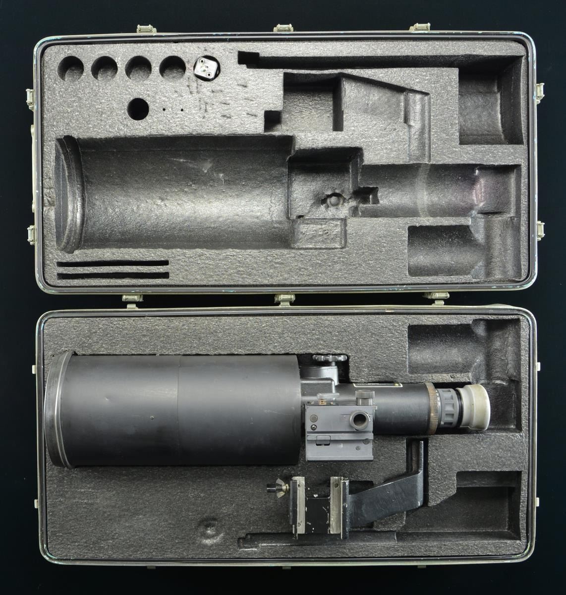 SERVED WEAPONS. Sight is fitted w/ a normanclature tag on the left side w/ the above information plus "Model 9927B; S# 328146 & Mfg. VARO Inc. Garland TX. USA.". Marked on right side w/ stock numbers. This scope was mfg. in U.S. & apparently supplied as aid to Israel. Scope controls have added Hebrew script indicating use by Israel. The scope measures approx. 25" overall w/ a tube diameter of approx. 6/ 1/2" & is designed for use on heavier weapons such as the 50 cal. machine gun. It is referred to as a "starlight" scope. They do not emit light but rely on ambient light sources such as starlight & moonlight. The scopes perform best w/ these light sources & do not do as well when there are overcast conditions. The lamp is amplified using a photo cathode & an image intensifier tube in order to significantly increase image contrast. The objective lens has a filter to prevent damage to the sensitive electronics during daylight hours. The original batteries were an odd proprietary type a& the battery was replaced w/ an adapter which uses 4 standard AA batteries. The adapter was made in Taiwan & has added "R.O.C." marking. UNATTACHED ACCESSORIES: the scope is supplied w/ a foam lined fitted aluminum case & a sight bracket which appears to fit the 50 cal. Browning machine gun. There are compartments in the case for unknown accessories which are not present. Instruction manual is not present. CONDITION: although not tested the scope & bracket appear to be in good to very good condition w/ light wear, scattered handling marks & notable loss of finish on the focus ring & battery cover. The OD painted box appears in good serviceable condition. (02-19540/RW). $500-800.