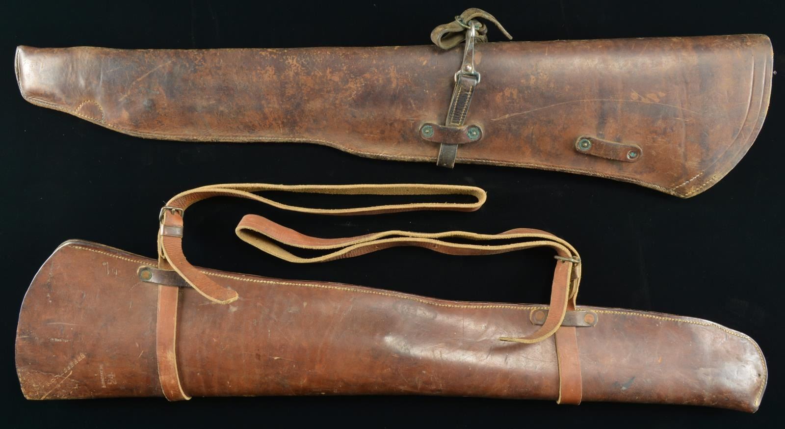 Lot 1479 2 RUSSET LEATHER RIFLE SCABBARDS.
