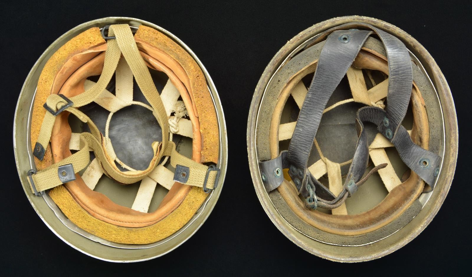 Lot 1497 2 WWII BRITISH PARATROOPER HELMETS.