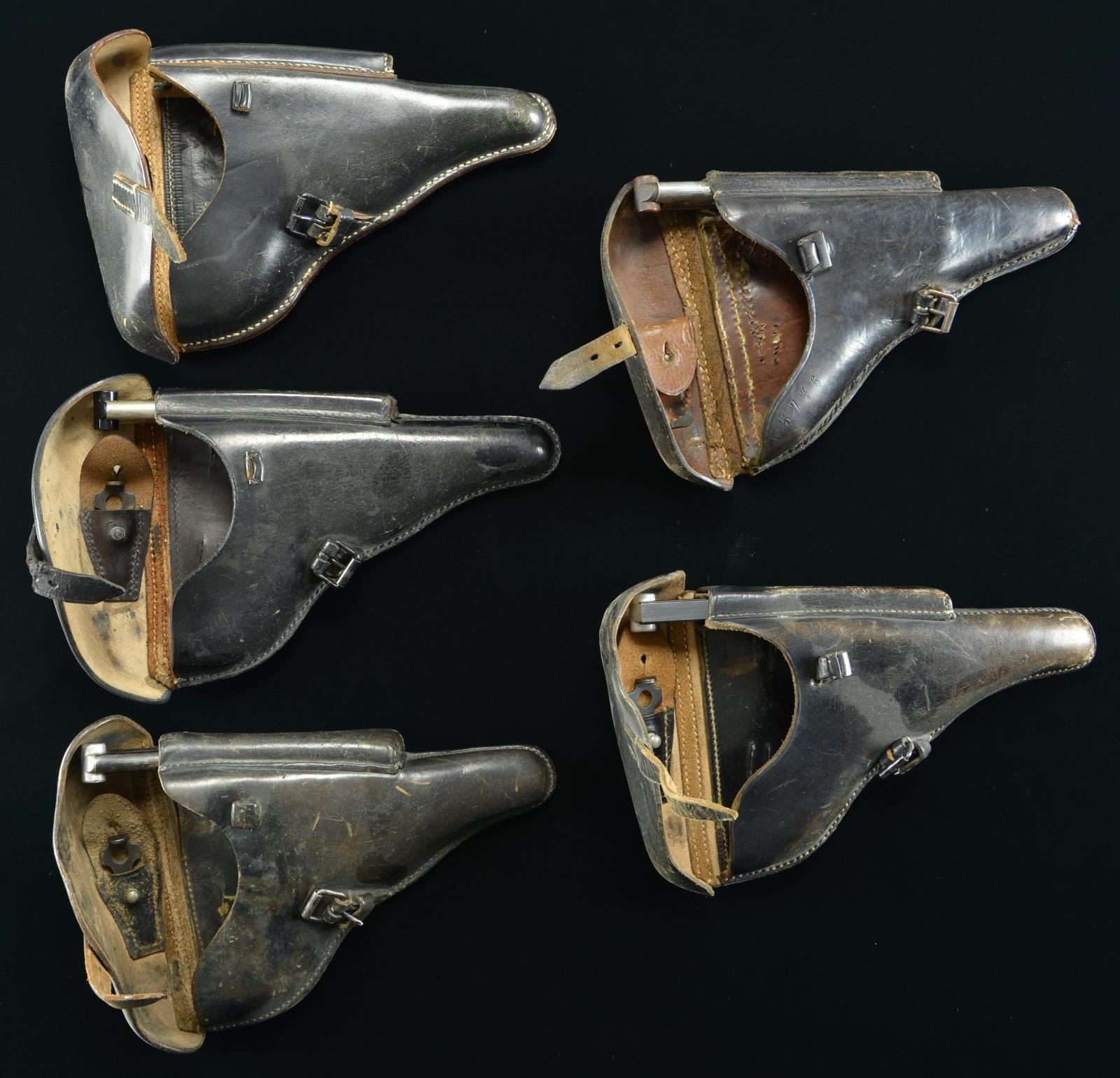 Lot 1506 5 BLACK STANDARD LUGER FLAP HOLSTERS.