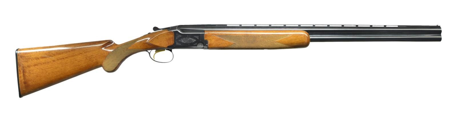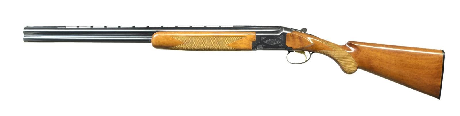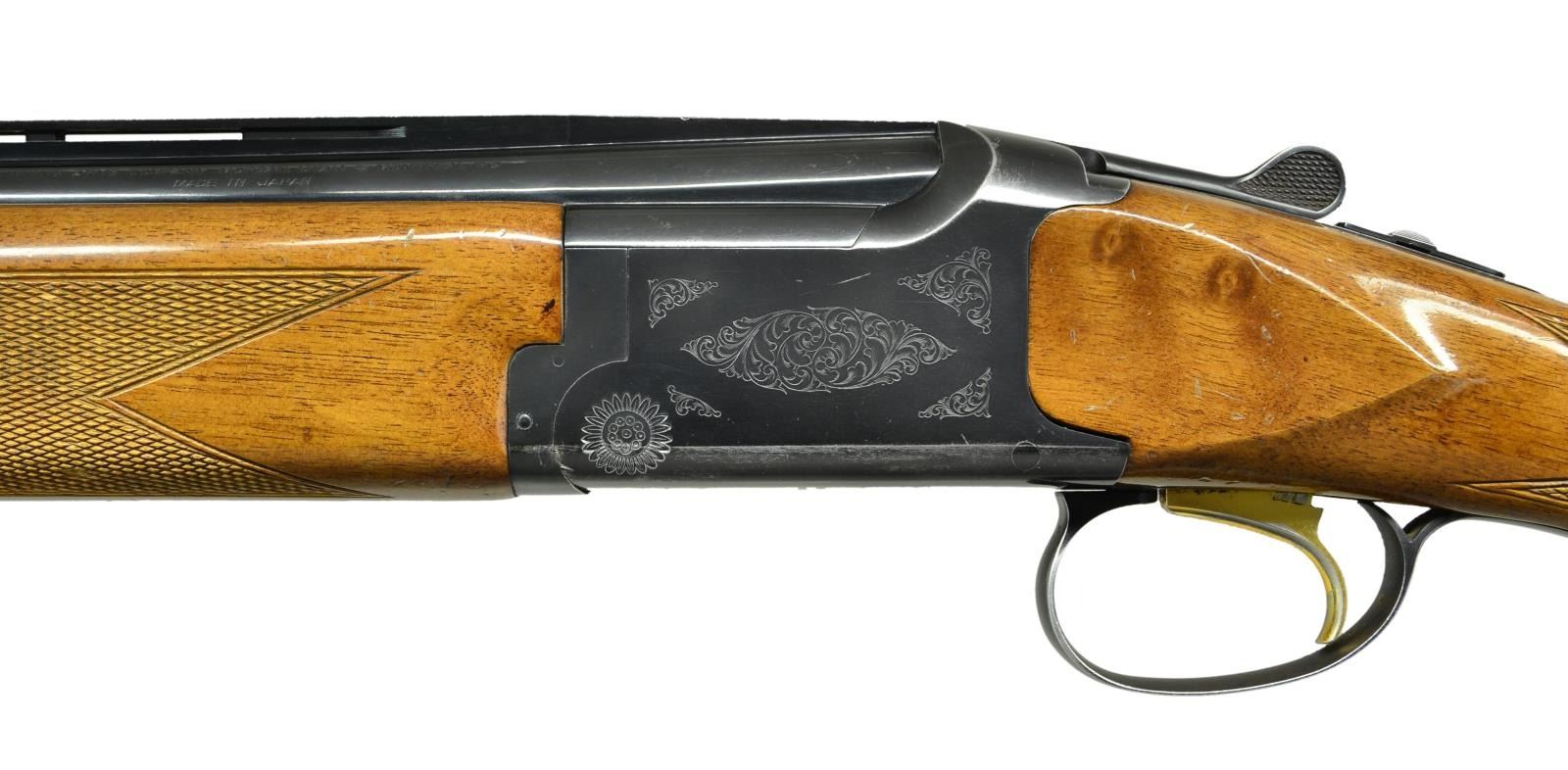 SHOTGUN. Cal. 20 Ga., 2 3/4" & 3". S# 20214PP763 (1988). Bbls. 26" VR w/ bright bead. Invector choke tubes; Full & Mod tubes included. Boxlock action w/ scroll engraving, gold SST & ejectors. Checkered gloss finished Lightning forearm & rnd. knob pistol grip stock. LOP: 14 1/2" to Browning buttplate. Weight: 6.65 lbs. UNATTACHED ACCESSORIES: IC & SKEET tubes & choke wrench. CONDITION: very good bbl. blue showing 2 dents & numerous marks attempted to repair dents along w/ pinprick oxidation. Very good receiver blue showing faded finish on bottom edges & a few marks. Very good wood finish showing numerous light marks. Very good bores. (23-58/MD). MODERN. $1,200-1,800.