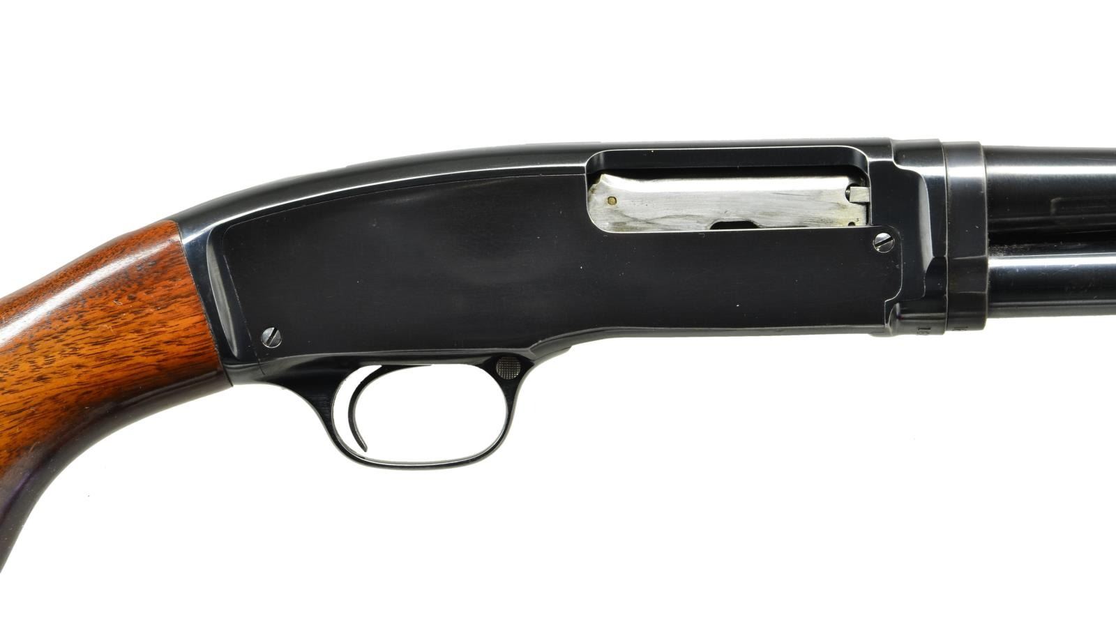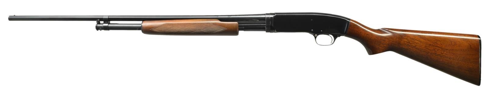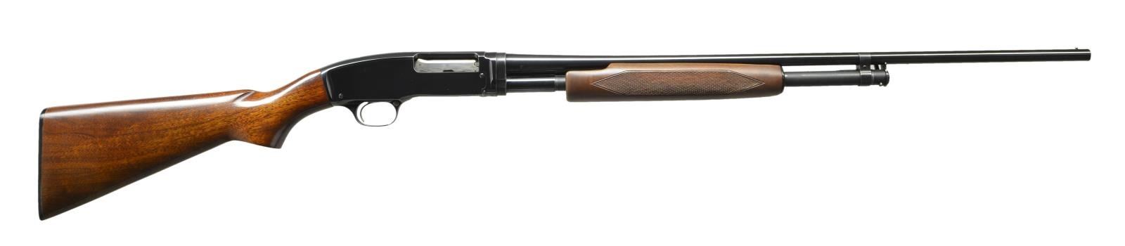 Cal. 410, 3". S# 160256. Bbl. 26" with fixed MOD choke and steel bead. Original pistol grip stock with plastic butt plate. Replacement Browning Beavertail forearm. 1963 mfg. CONDITION: over 90% original blue showing slide and carry wear. Wood has good original finish. Bright near excellent bore. PROVENANCE: Estate Collection of Thomas F. Wolfinger. (22-6129/DS). CURIO. $900-1,350.