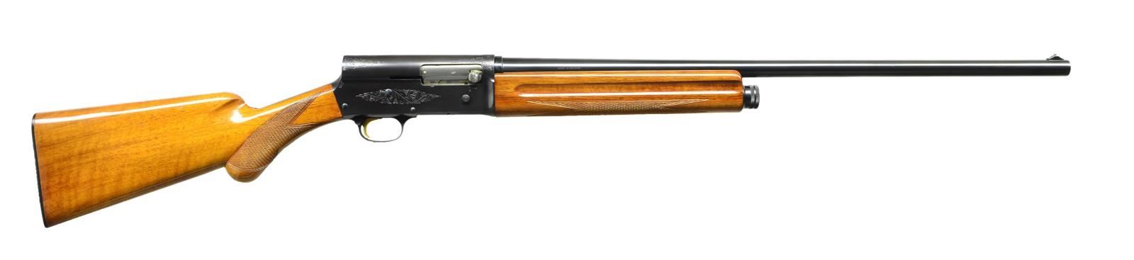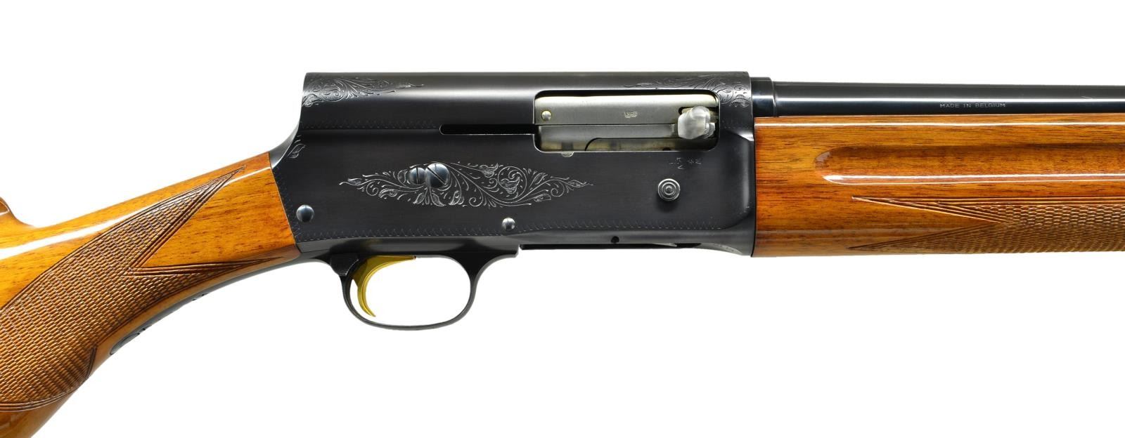 Cal. 16 Ga. S# 3S756. Bbl. 25 1/2" plain w/ 2 3/4" chamber & choked “IMP MOD”. Belgian mfg. 1963. Front steel bead, factory scroll engraved blued finish w/ gold plated trigger. Checkered forend & round knob pistol grip buttstock w/ 14 1/4" LOP to factory buttplate. CONDITION: superb example retaining about 98% original finish. Light blond wood has a few scattered dings & shallow dents w/ minor chipping at the toe. Bore is near excellent, bright & strong. (23-183/CW). CURIO. $1,200-1,600.