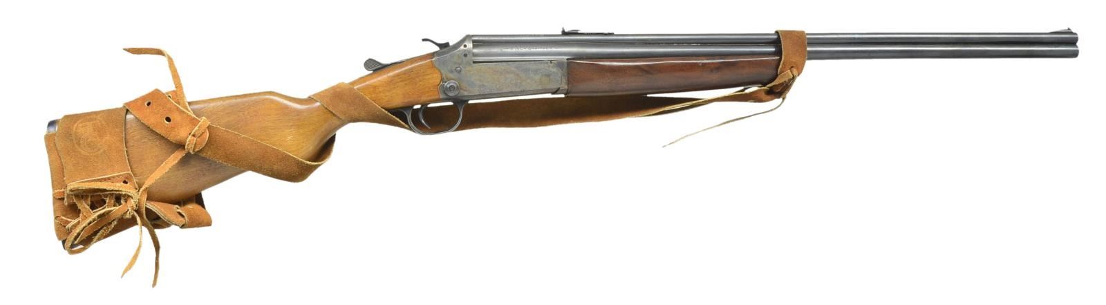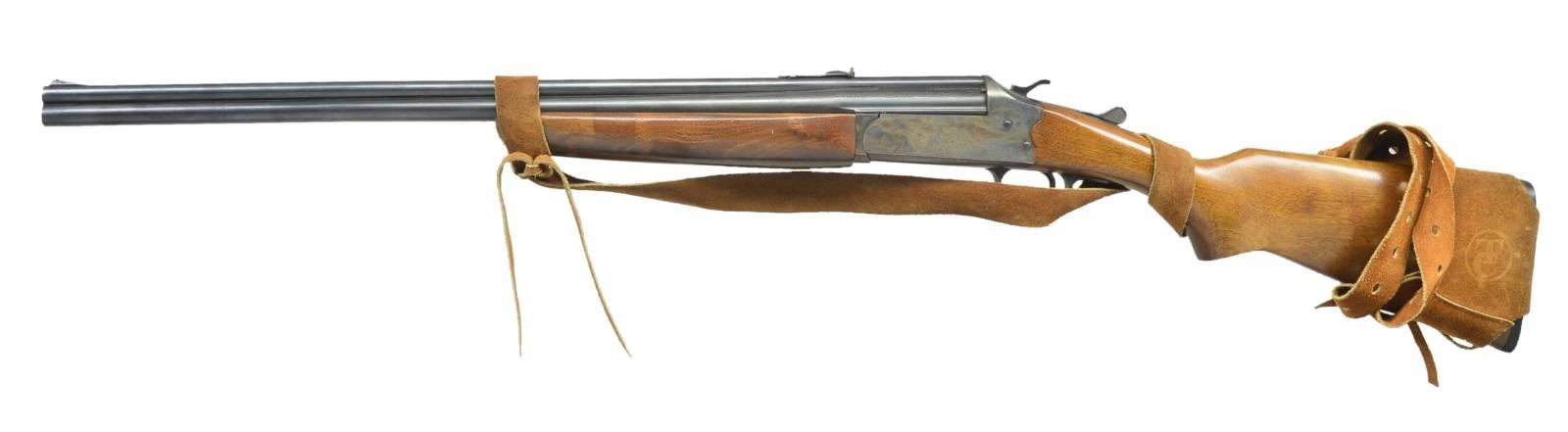 Cal. 22 LR. / 410, 3". NSN. Bbls. 24" w/ open sights. Full choke. Bbl. selector on right side case colored action. Walnut stock set w/ buttplate. TC brown suede sling. CONDITION: good plus blue w/ peppery oxidation near action. Good case colors w/ peppery oxidation throughout. Very good wood finish. Very good shiny bores. (22-5526/MD). CURIO. $400-600.