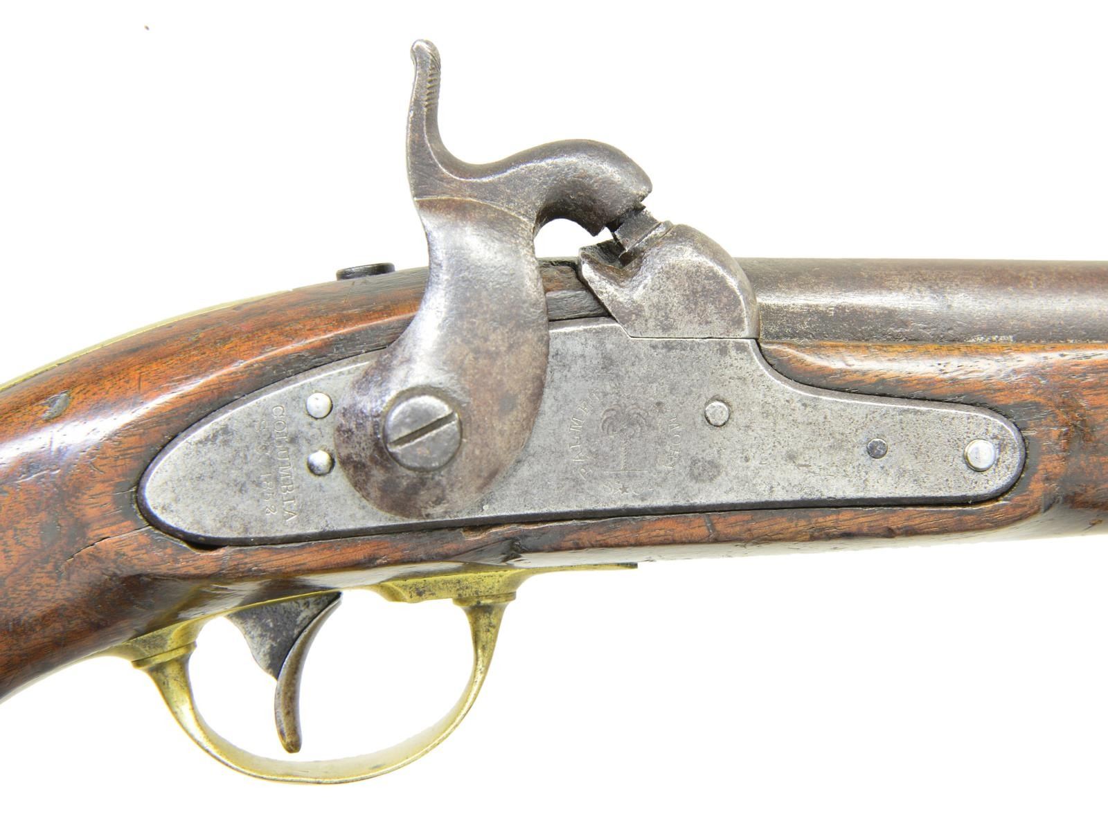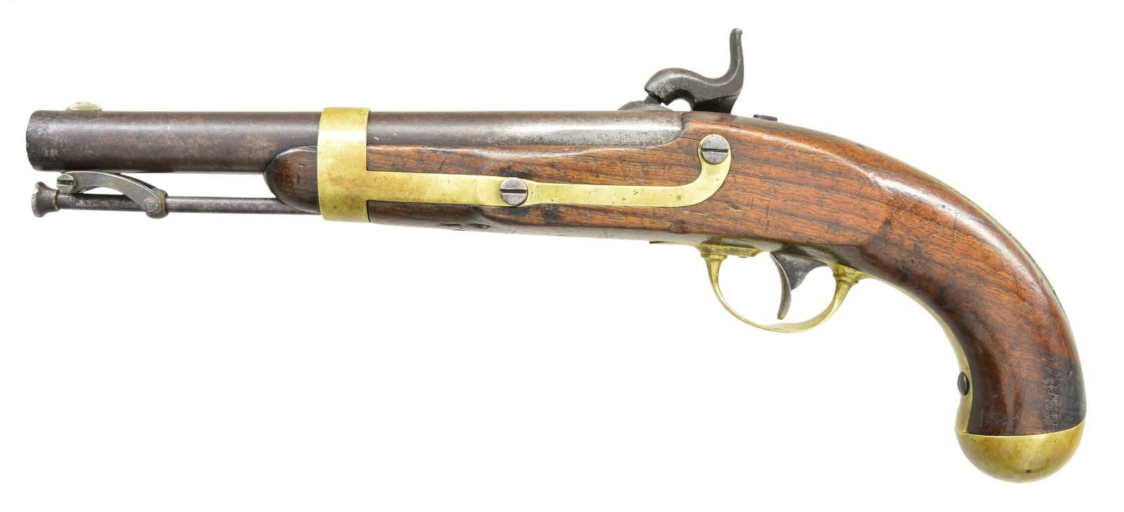 PISTOL. Cal. 54. S# 1-4. This Model 1842 cavalry pistol with 8.5" barrel was assembled by William Glaze in Columbia, SC in 1852-1853 for the state of South Carolina. Glaze made & delivered 1,000 of these cavalry horse pistols in 1853. Later, during the war for Southern Independence, these pistols served South Carolina cavalry units in Confederate service. Most survivors of the war saw hard service. This example has survived in very good overall condition with fine aesthetic and good “PALMETTO ARMORY” markings on lock and barrel.