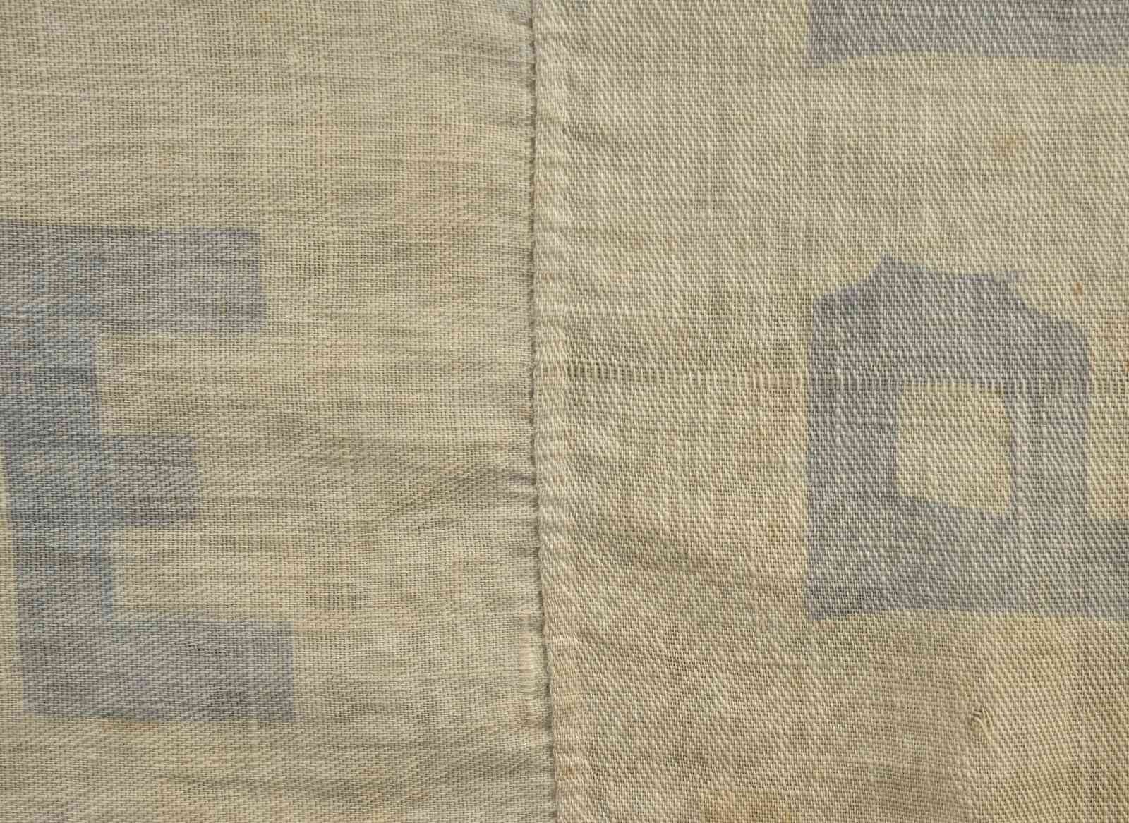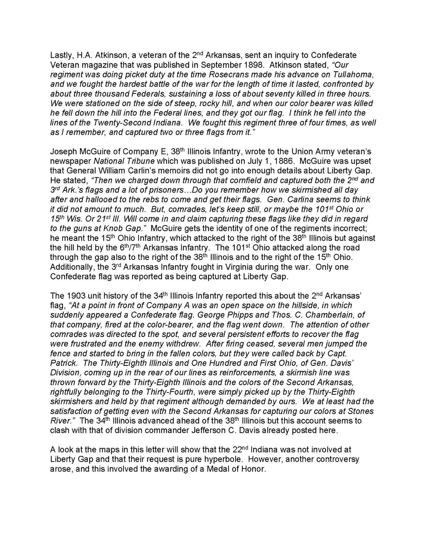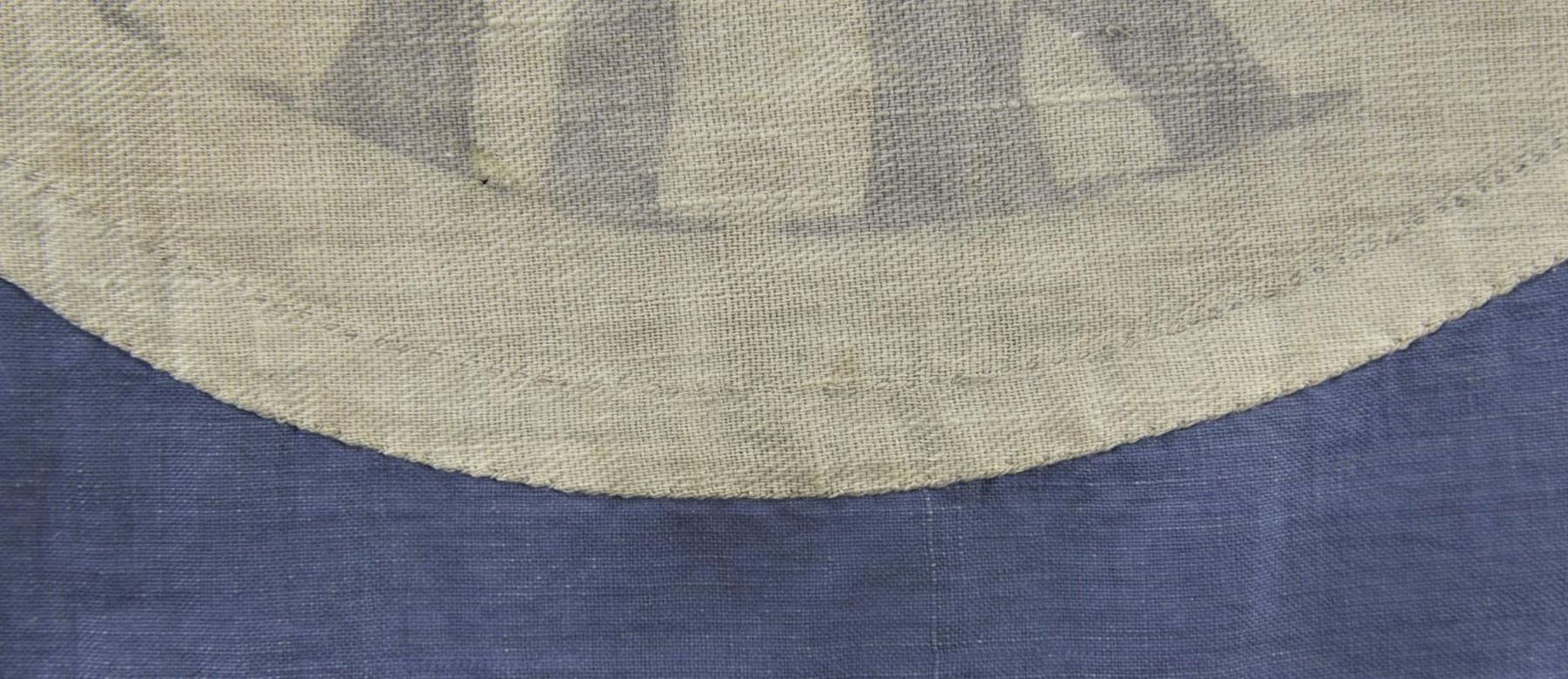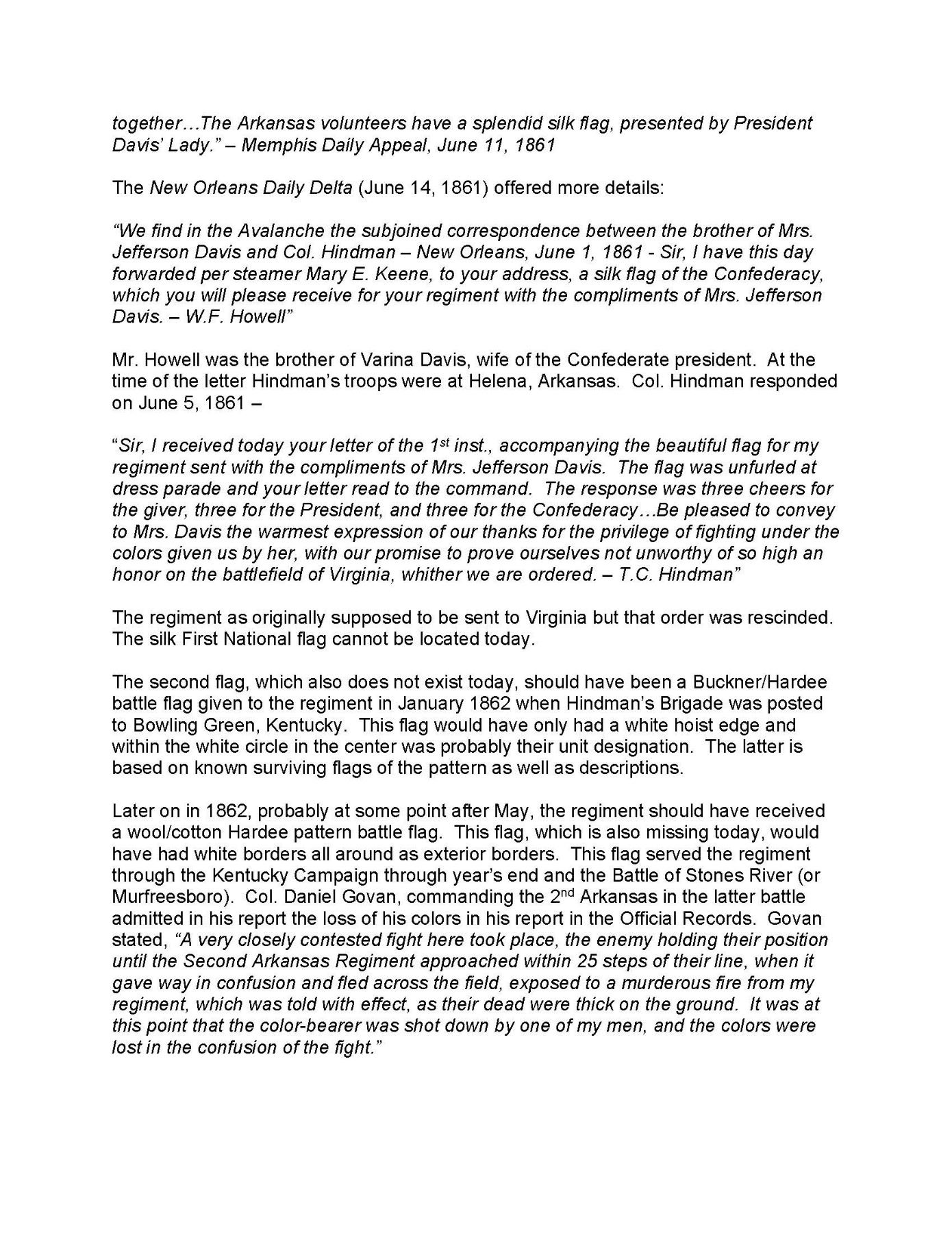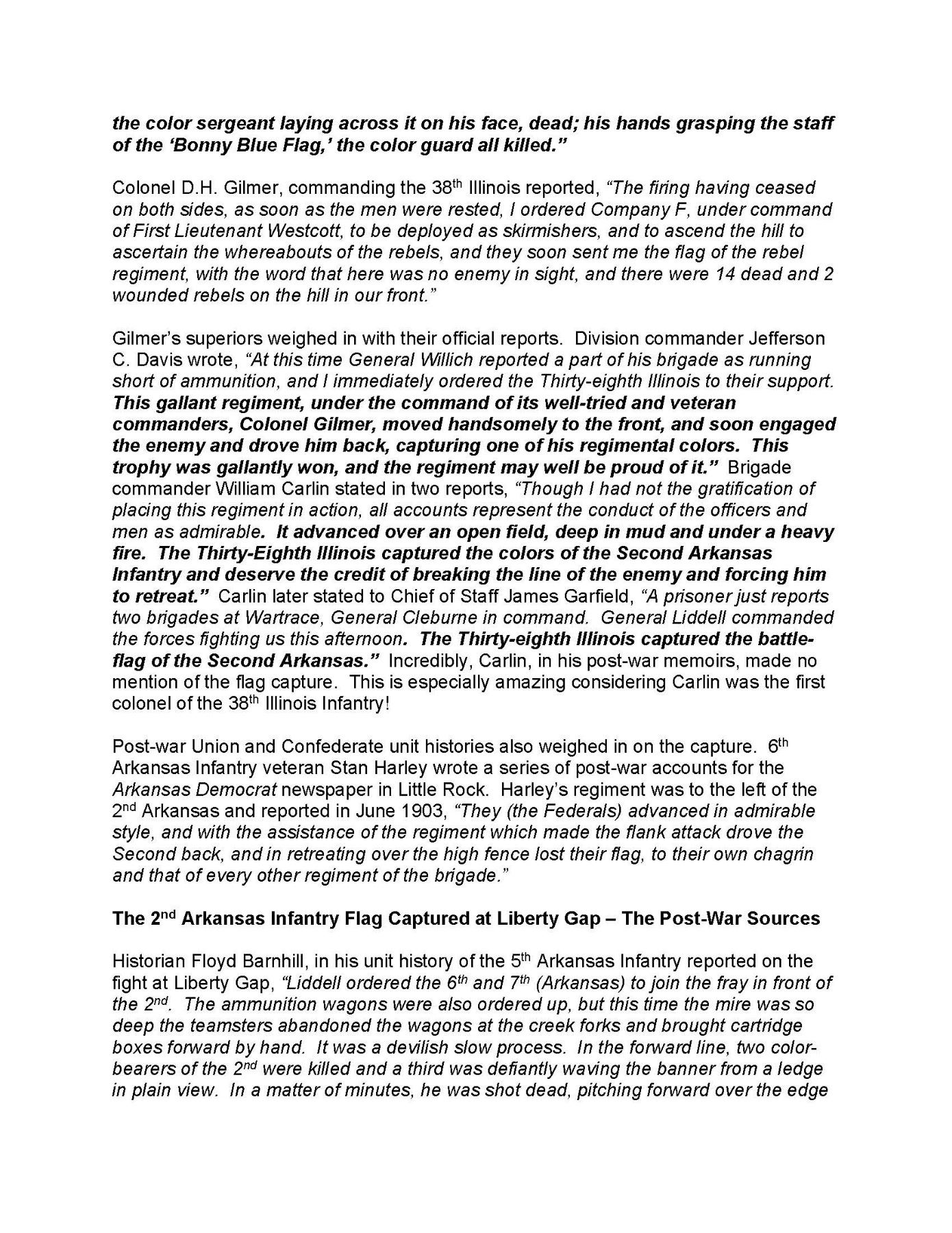 Made entirely of Southern loomed cotton. 46.5" x 40.25" overall, 2.5" sleeve, 16x14" "moon" has crossed cannon (captured cannon in battle) painted above "2nd ARK REGt", painted battle honors "SHILOH", "MURFREESBORO, "PERRYSVILLE", & "TUSCUMBIA BRIDGE" on each border. The 5 line painted capture caption: "Captured by the 38th Illinois Vols commanded by Col. Gilmer at Liberty Gap, Tennessee, June 25th 1863".