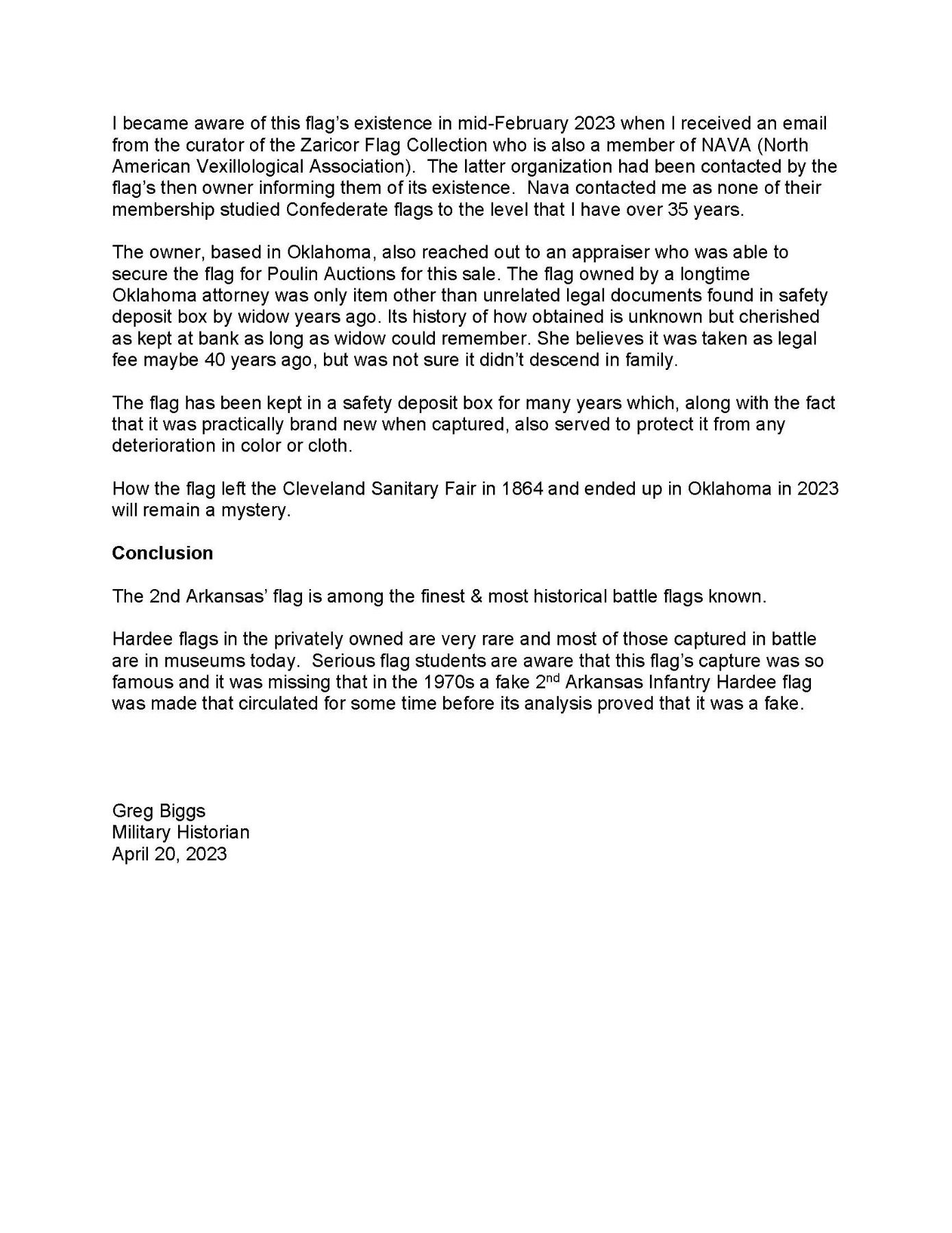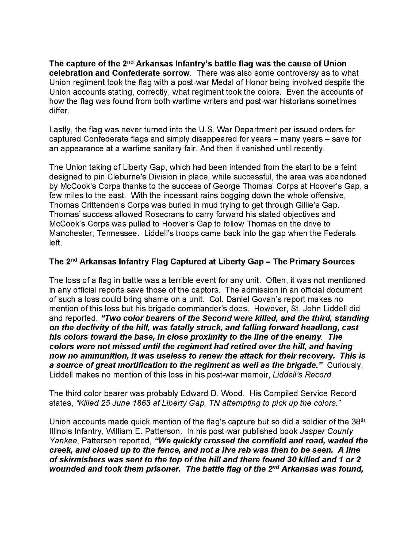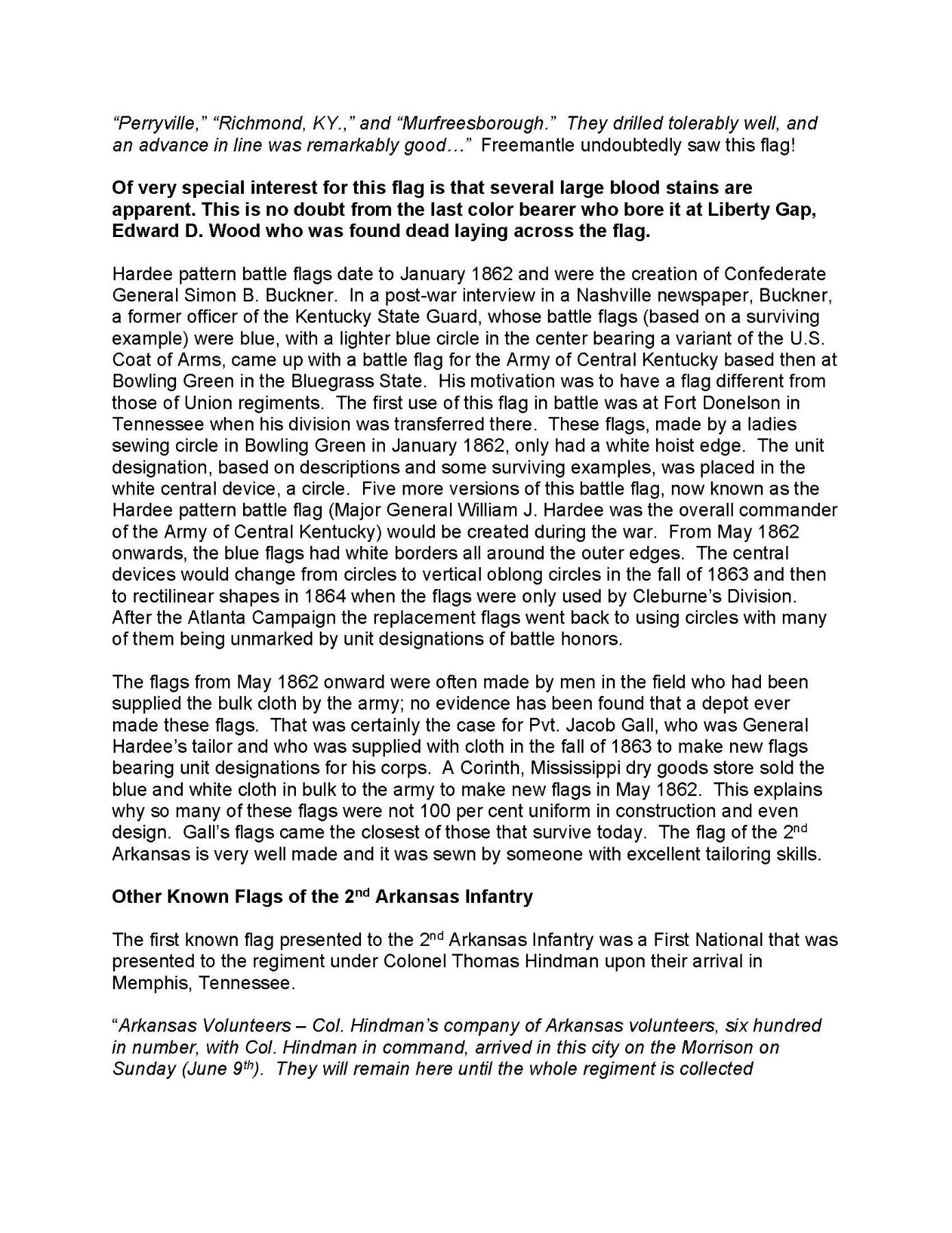 BATTLE FLAG EXTANT. This flag has been locked in safety deposit box for many years and thought lost since last known when displayed and auctioned at the Northern Ohio Sanitary Fair for Soldier’s Aide Society February 22-March 10, 1864. Flag has an amazing history. Hardee’s Corps, Army of Tennessee were issued flags in Spring 1863. Flag was captured at Battle of Liberty Gap during the Tullahoma Campaign June 25th 1863 where three color bearers were killed in only one hour. The devastation caused by newly introduced Spencer repeating rifles won the battle of Liberty Gap decimating the 2nd Arkansas who now had too few men for a regiment. Their next battle, they would fight as consolidated regiment with the 15th Arkansas.