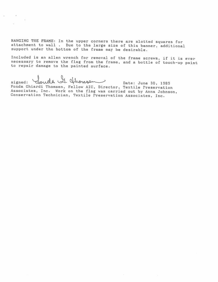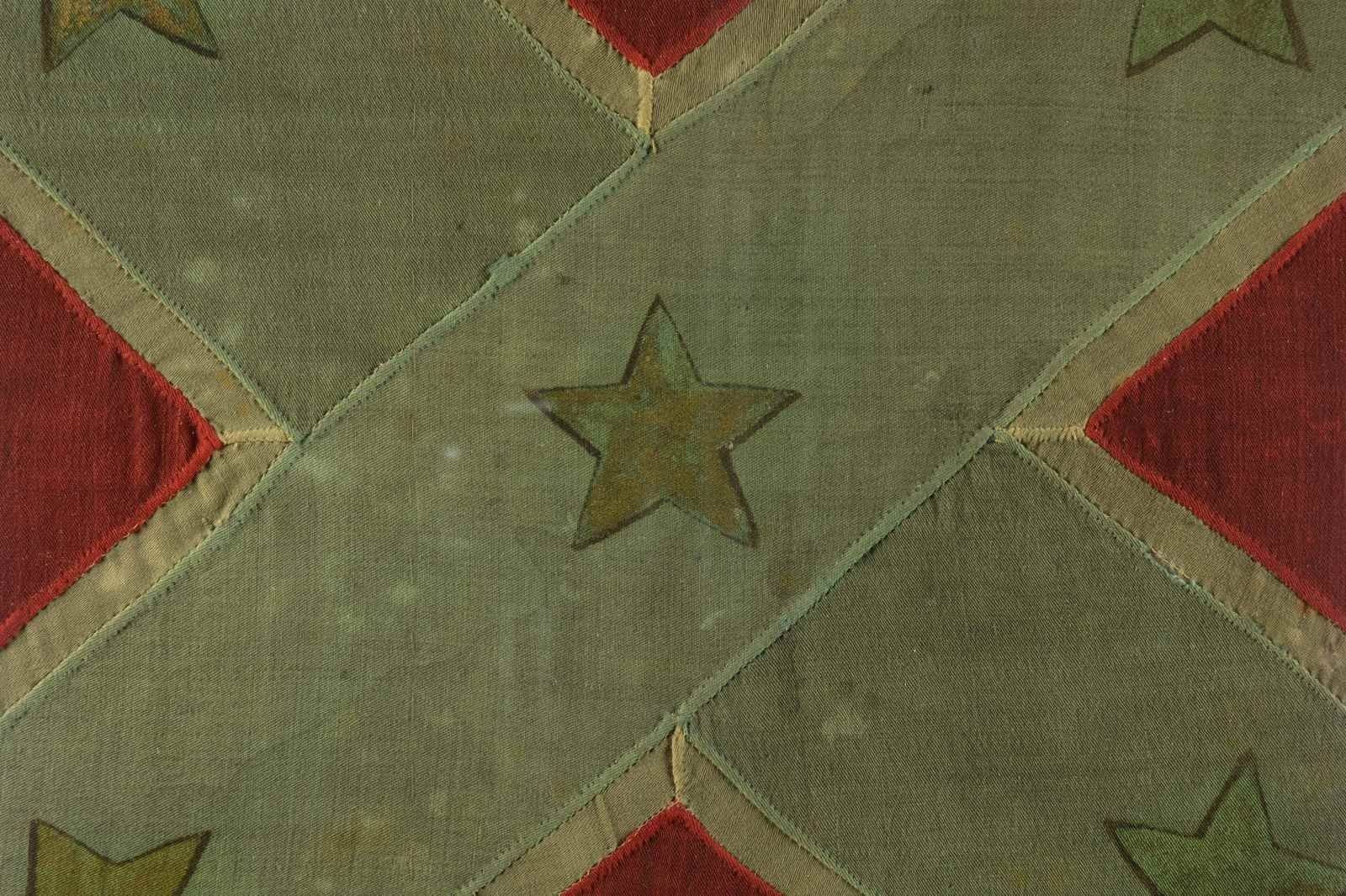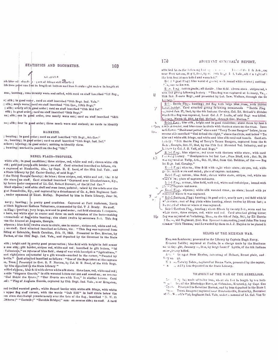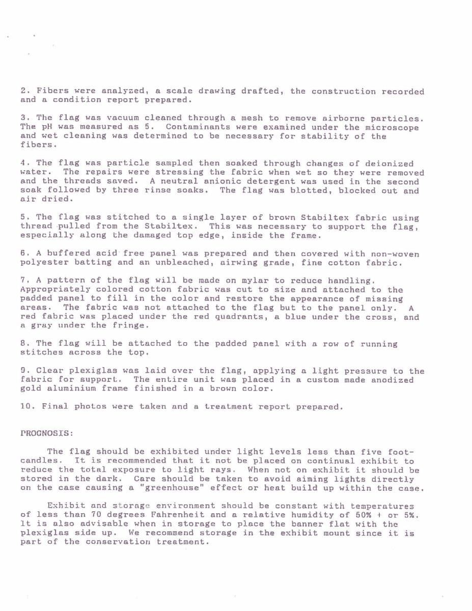 Accompanying are detailed reports of battle, and detailed report of flag conservation, and history of flag from when captured and collection history. The Battle of Fair Garden was near Sevierville, TN. UNATTACHED ACCESSORIES: Large file includes: detailed drawings and photo transparencies, Howard Madaus letters of authenticity and history 1983 and 1985, bill of sale from 1985 (R.E. Neville, Mobile), Textile conservation and restoration reports 1988 & 1989 (Fonda Thompson TPA), copies of reports of capture and inventory as part of Indiana State Library collection till collection dispersed in 1962. 1990 Newspaper article about Fonda Thompson and conservation of Alabama's Confederate flags. Misc. history of General Morgan. "Also included is scholarly 11 page report of history of flag by prominent flag authority Greg Biggs"