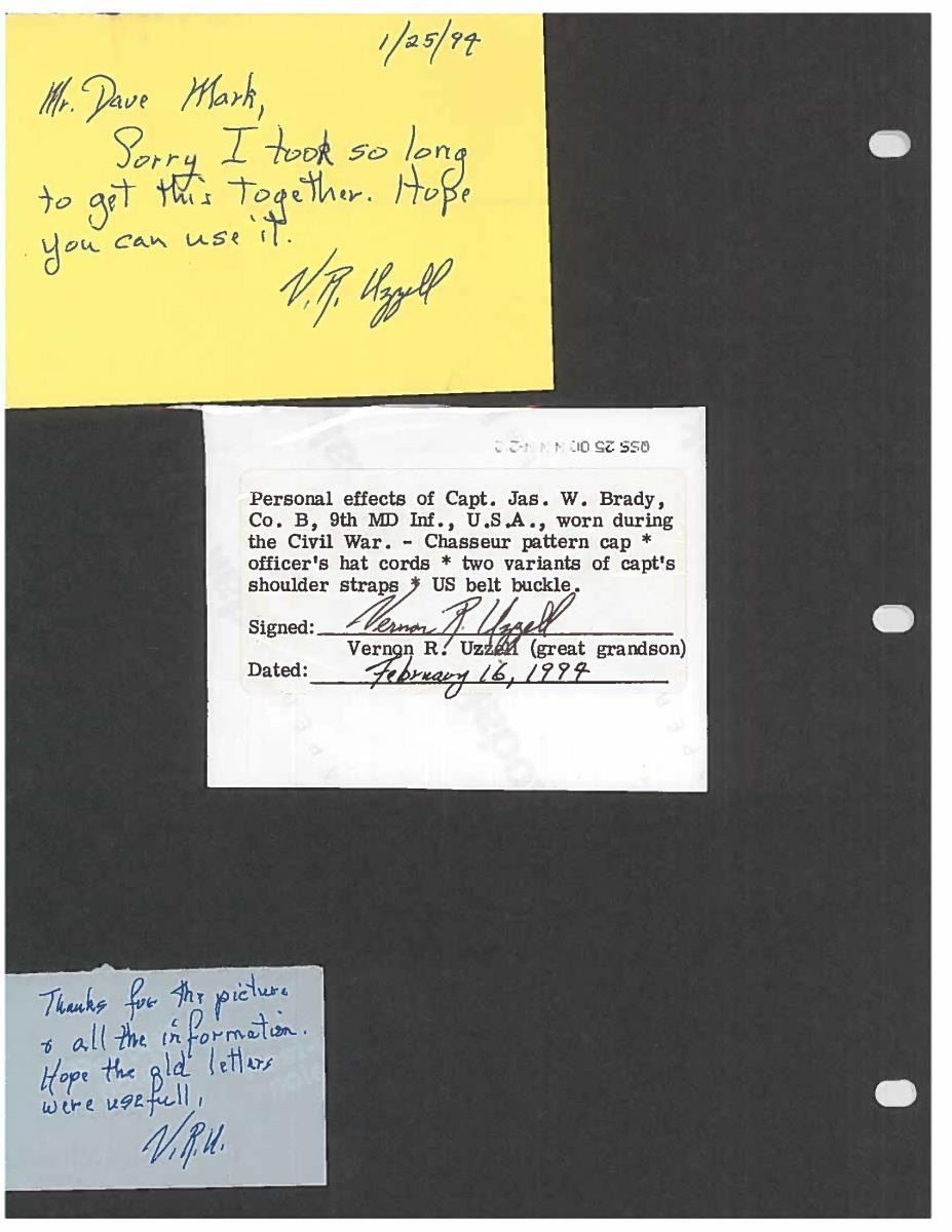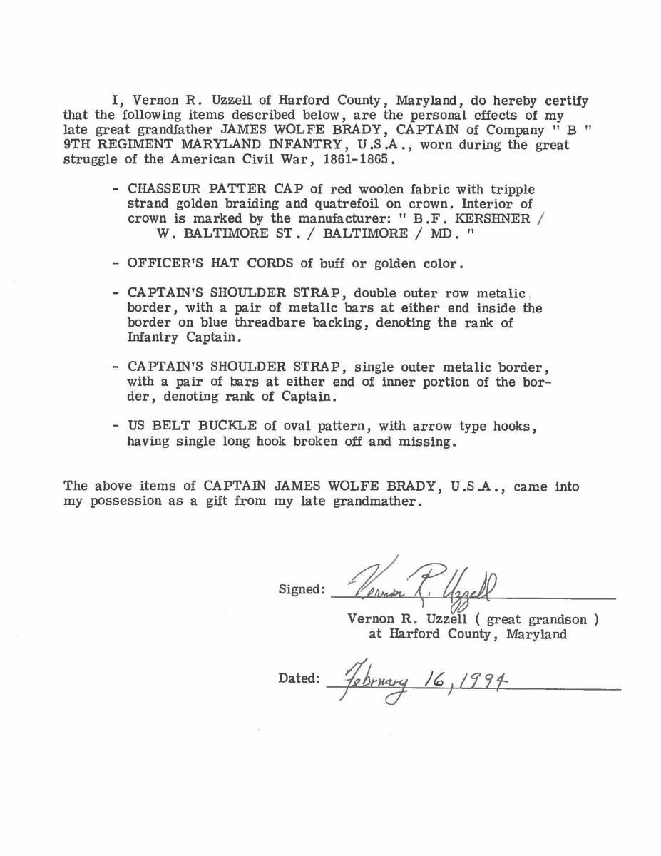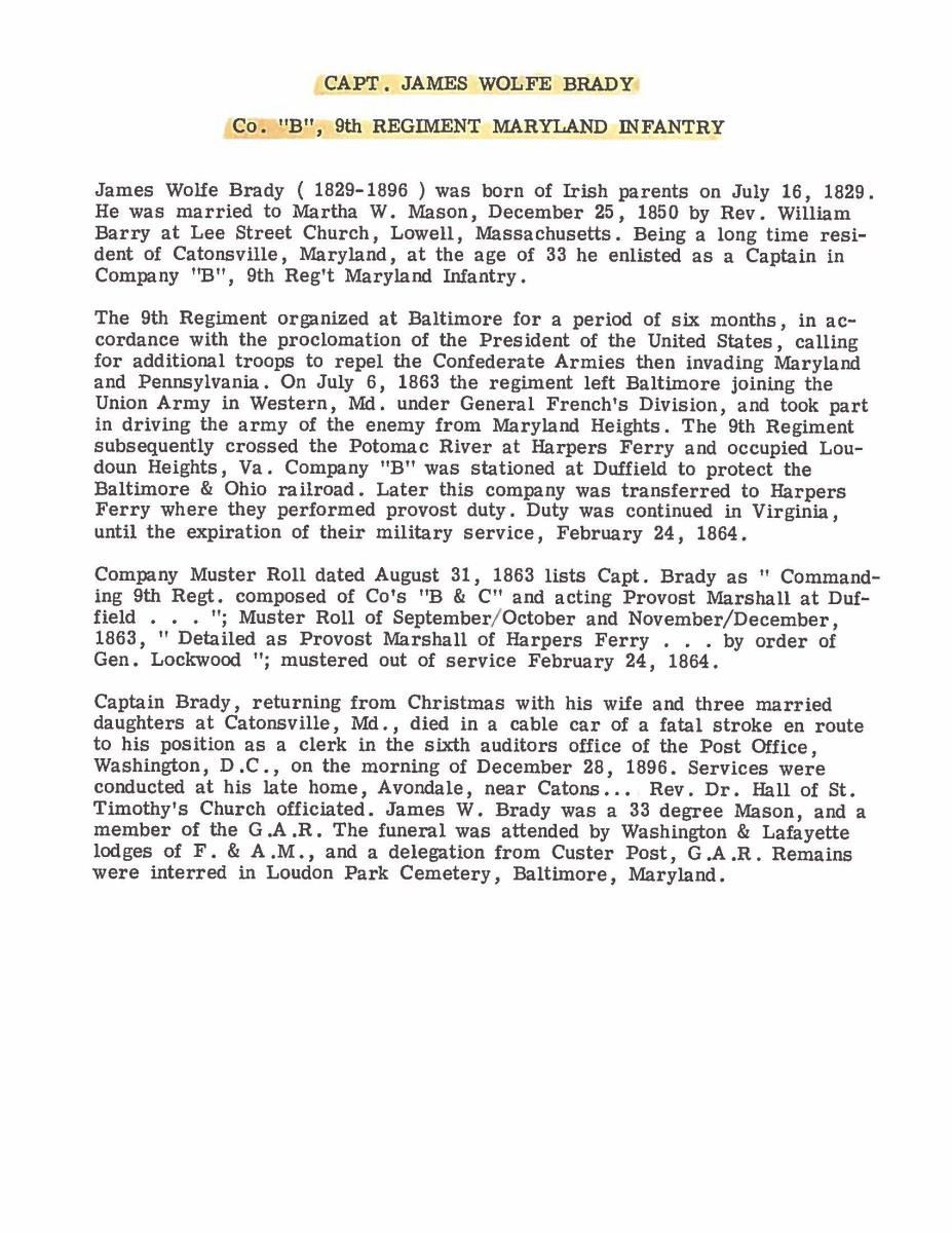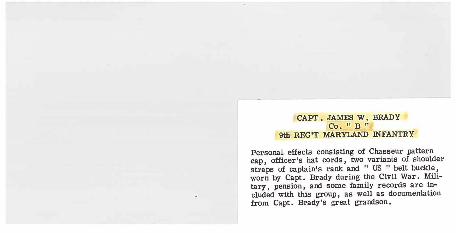 Lot 3091 CAPT. JAMES BRADY 9TH MARYLAND
