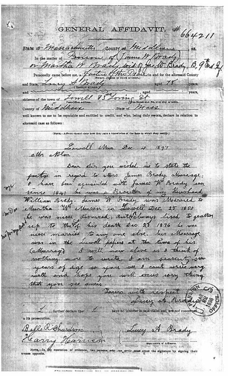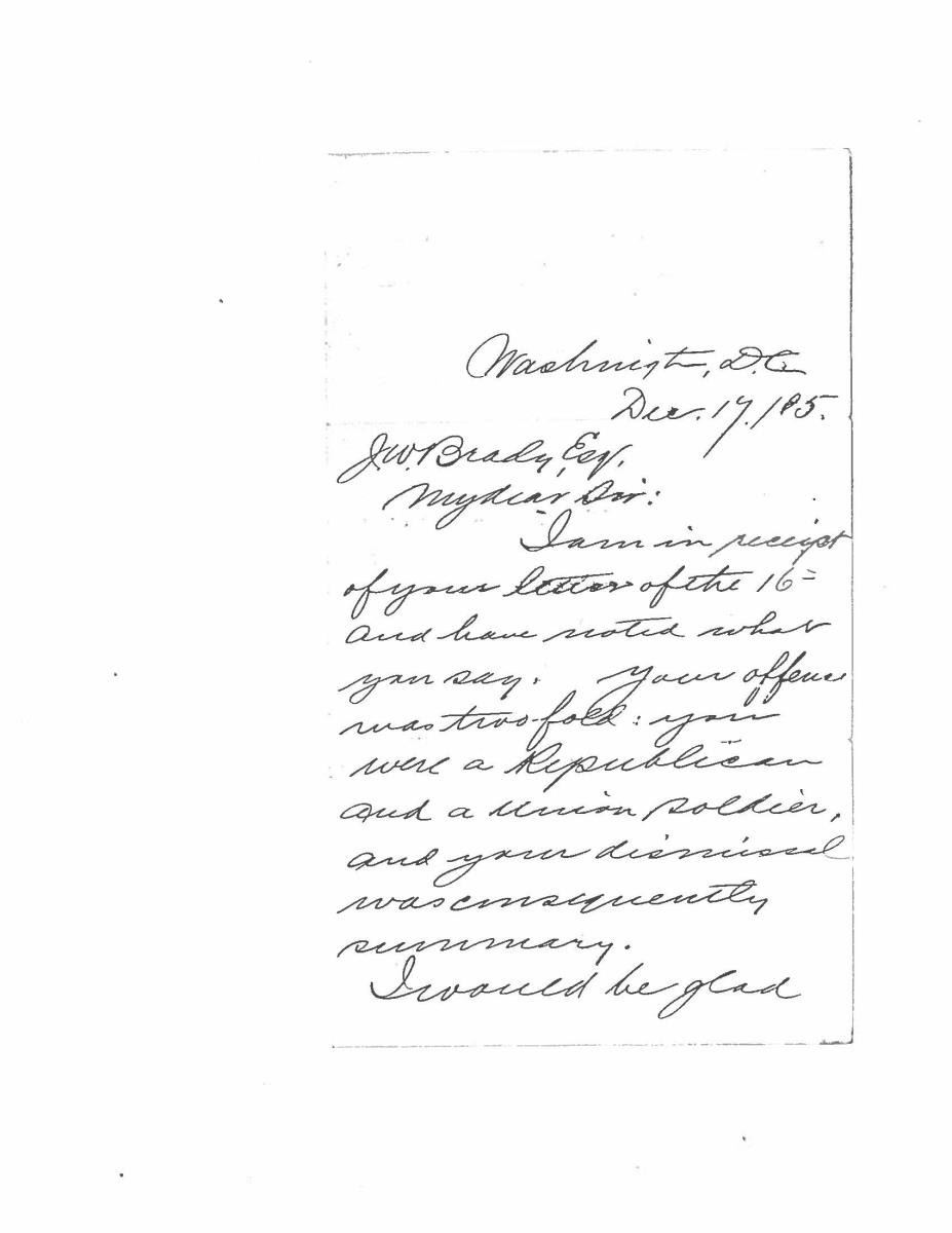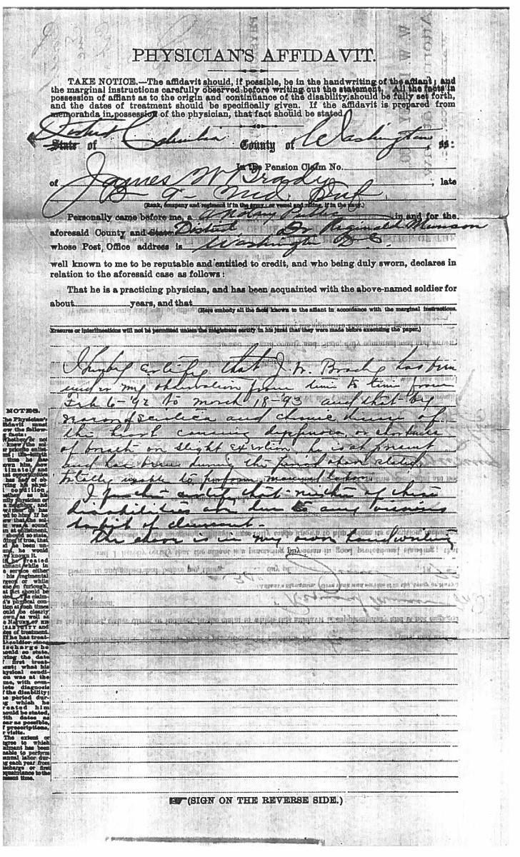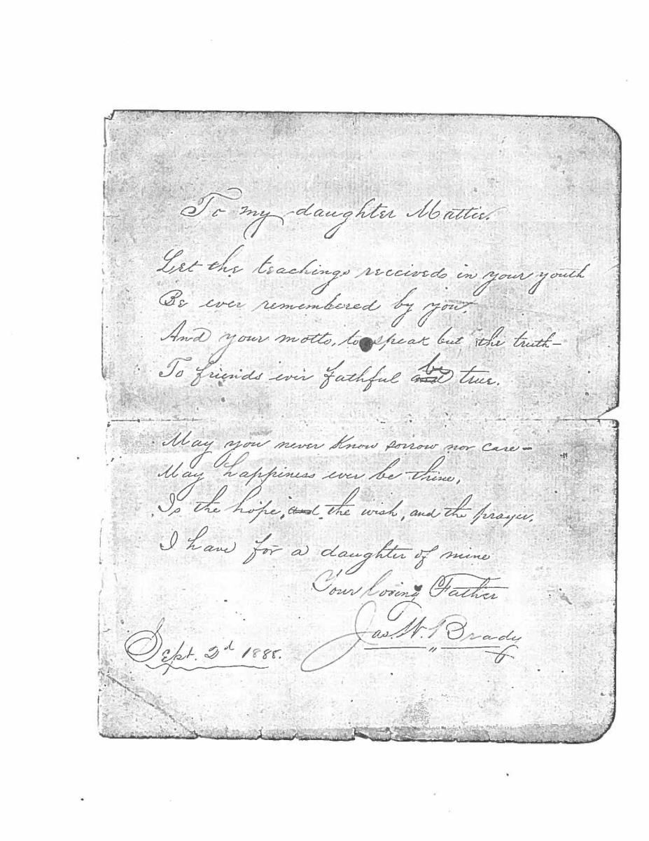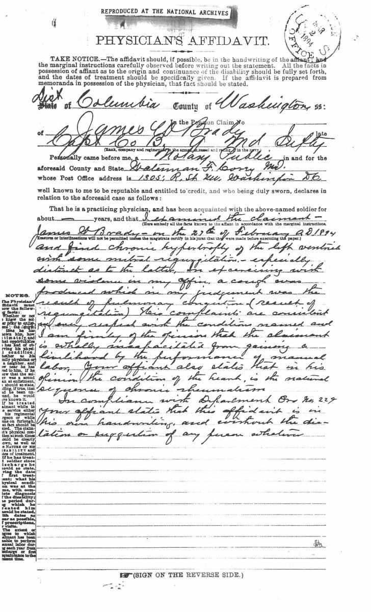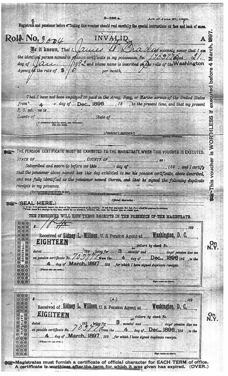 This sword was presented by his company when Capt. Brady was Provost Marshall of Harper’s Ferry. His men thought highly of him as this was expensive sword in 1863. The sword was made by Clauberg of Solingen Germany retailed by possibly Canfield & Brother in Baltimore a known Clauberg agent. Finely engraved between high relief decorated scabbard mounts on scabbard: “Presented to / Capt. Jas. W. Brady / by Company B. 9th Md Infy / Harper’s Ferry, Va / Oct. 28, 1863”. This extra fancy model 150 Staff & Field sword has eagle head quillon, drooped wing heraldic eagle in guard with pierced foliate design, pommel with high relief eagle & shield, spiral sheet silver grip. The top of pommel was mounted with large cabochon (now missing). Some may have thought it was valuable gemstone, but garnets were most typically used, this is easily restored if wanted. The solid brass scabbard has beautiful decorated mounts in high relief, top mount has panoply of arms, middle has eagle, and drag has soldier running with American flag, even the throat and blade are drag relief sculpted to match. 32” blade finely etched with patriotic motifs including fasces & liberty cap with riband: “IN HOC SIGNO VINCES”, spread wing eagle “E PLURIBUS UNUM”, fancy monogramed “US” and panoply of arms with 13 star American shield. James Brady sword was part of the late Arthur “Gil” Barrett and he displayed this as part of his Maryland collection for many years. CONDITION: very good overall, blade retains most of its original luster & finish, staining, pitting at ricasso. Brass has been cleaned and toned to light mustard patina, verdigris, gold wash remains in protected areas. (02-17010/JS). $6000-8000.