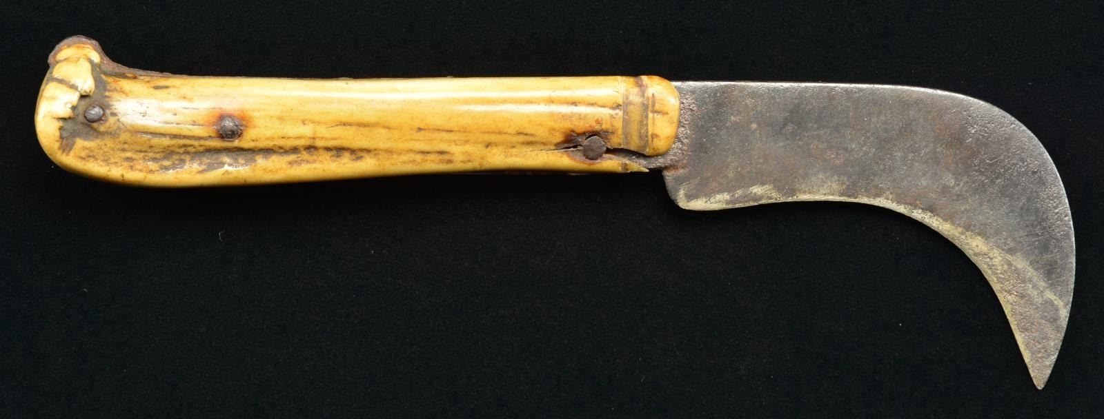 Lot 3181 LARGE EARLY HOOKED FOLDING KNIFE.