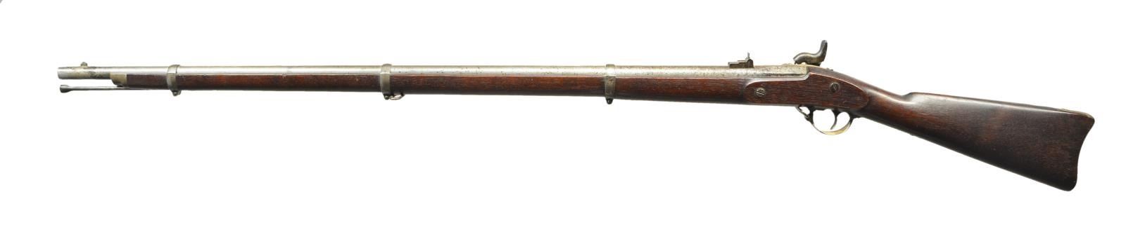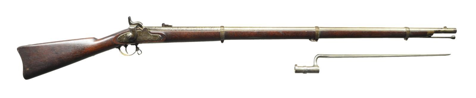 AMOSKEAG CONTRACT PERCUSSION RIFLE MUSKET & BAYONET. Cal. .58. S# NSN. Bbl 40". Standard configuration of "special model 1861/1863" contract rifle musket, 40" barrel dated 1864,