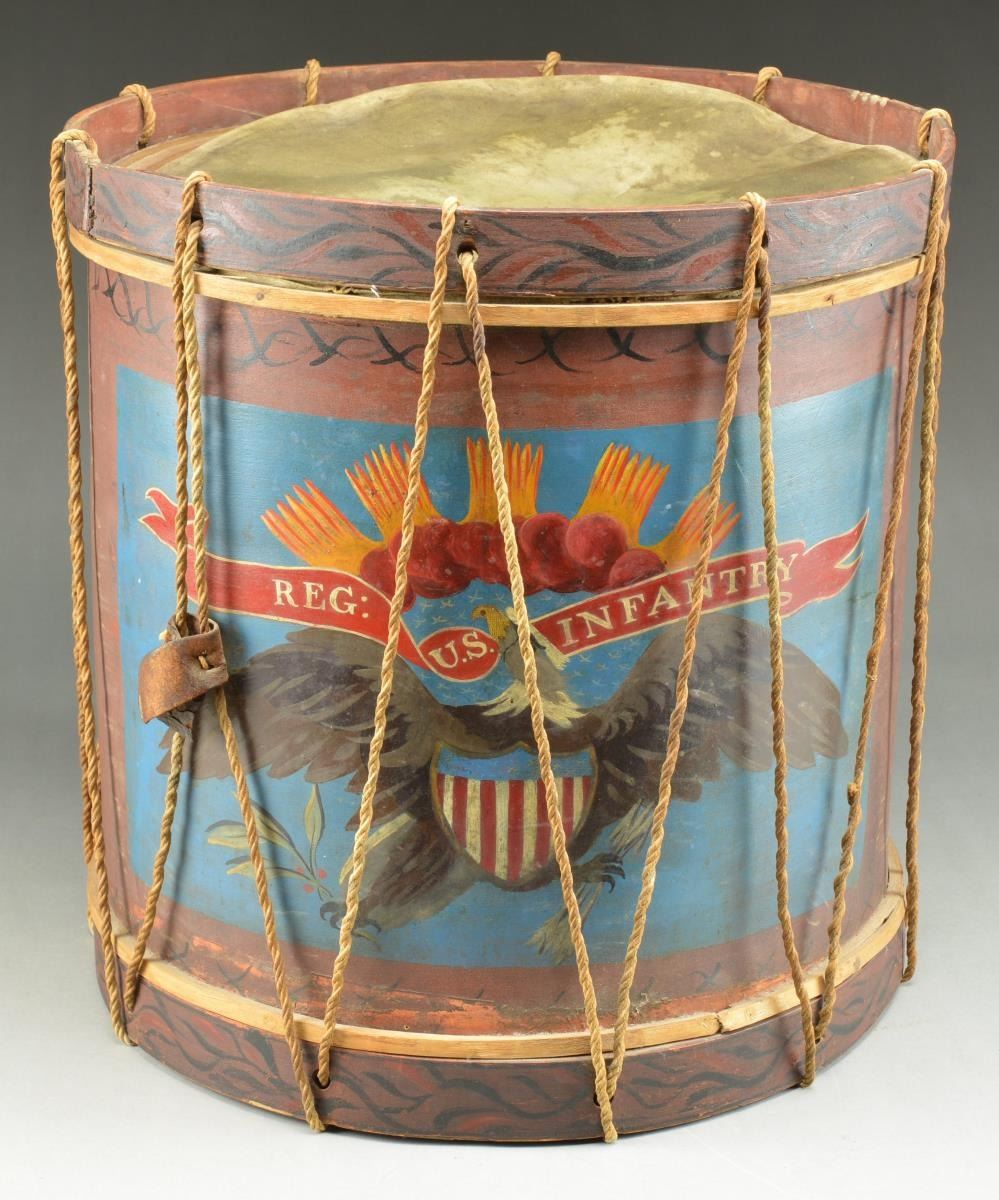 Lot 3322 A FINE CIVIL WAR OR EARLIER US INFANTRY DRUM.