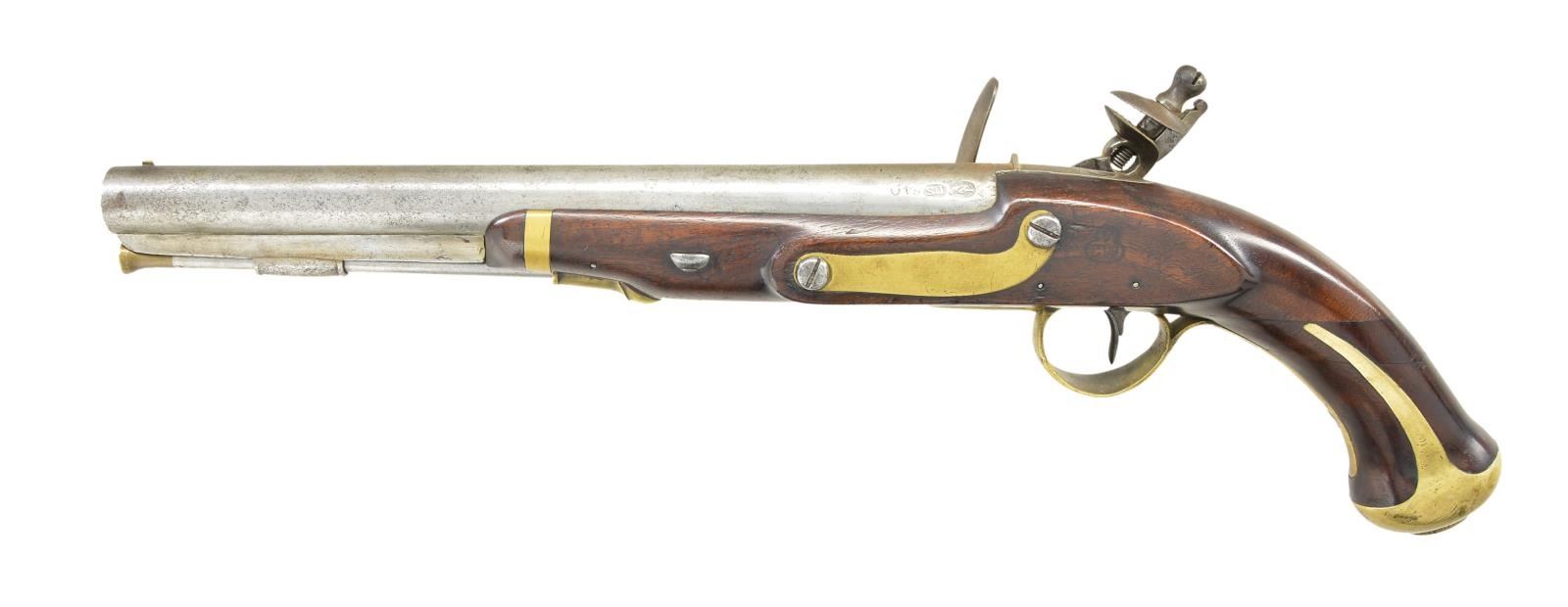 FLINTLOCK PISTOL, Cal. 54. S# 640. Bbl. 10". This is considered among the most graceful & aesthetically pleasing of American martial pistols. The prestigious American Society of Arms Collectors chose this gun in profile as their logo. These guns were made in pairs between 1806 & 1808 w/ a total production of just over 2000 pairs.