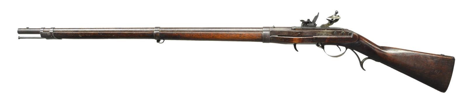 Cal. 52. S# NSN. Standard configuration with brown 32 3/4" barrel furniture and action. The Hall was made with total interchangeability of parts. Sights are offset to the left to allow them to be used while looking around lock parts set close to center line of tilting breech block which is case hardened. Front portion of block is stamped "J.H. HALL" "H. FERRY" "U.S." "1832". Dark oil finished American walnut stock is affixed to barrel with pins and is unmarked except for "WC" carved into left side of butt. Museum accession number is penned on left side of action. CONDIITON: very good to fine. Barrel furniture, band, etc. retaining most brown lacquer finish thinning overall and with considerable scattered light pitting. Breech block and lock parts retain over traces of case hardening color but are mostly dark gray. Stock is is good with many marks and scratches in its original oil finish. Original ramrod with button tip is brown patina. Bore is shiny with scattered pitting overall. Mechanically good, cock appears to be replaced. PROVENANCE: From the Lifelong Collection of Glen E. Mattox. (01-22469/MGM). ANTIQUE. $1,500-2,500.