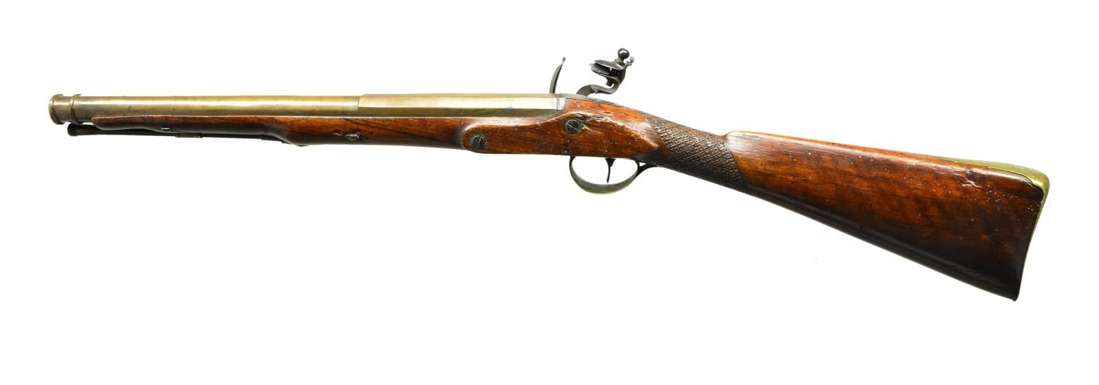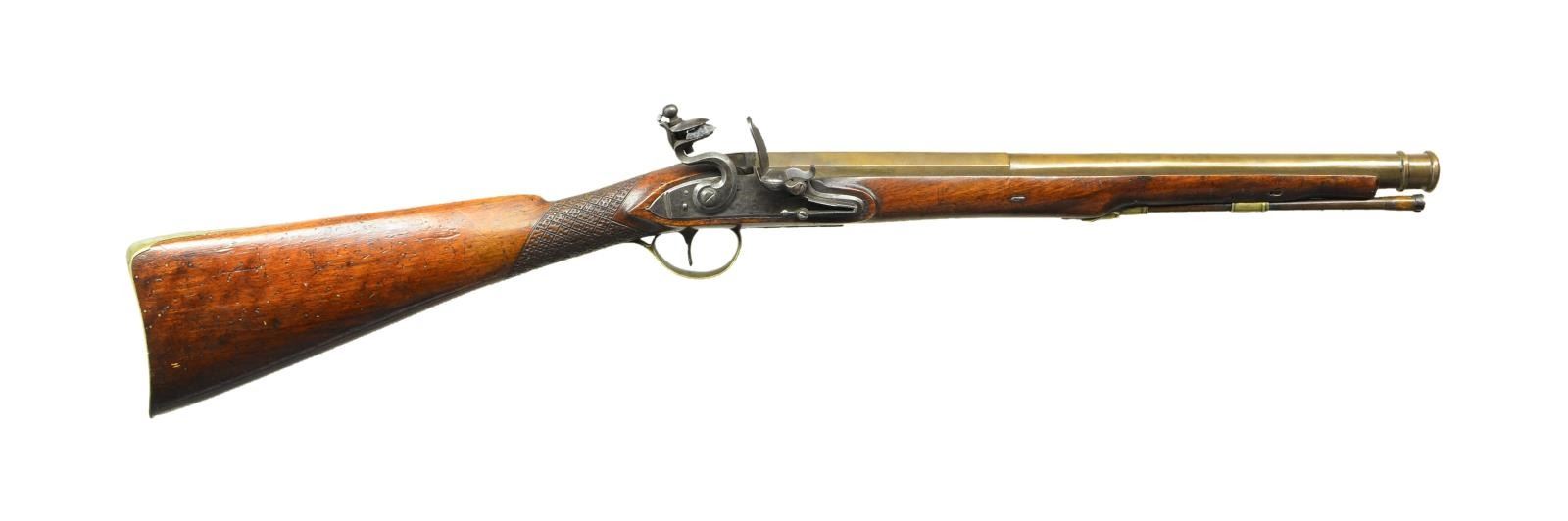 Lot 3484 GOOD BRITISH BRASS BARREL FLINTLOCK COACH GUN.