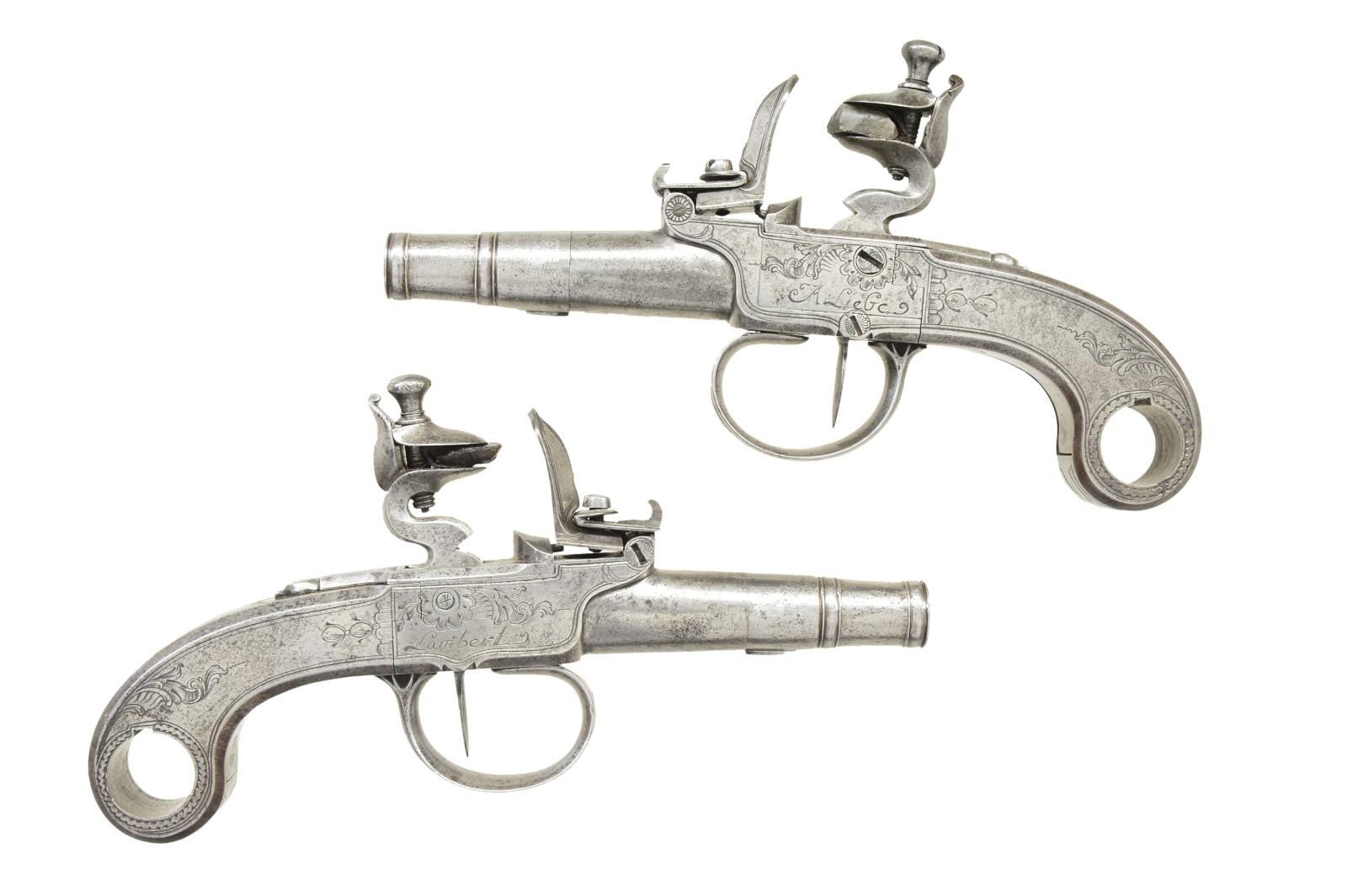 Lot 3555 LAMBERT PAIR ALL METAL FLINTLOCK PISTOLS.