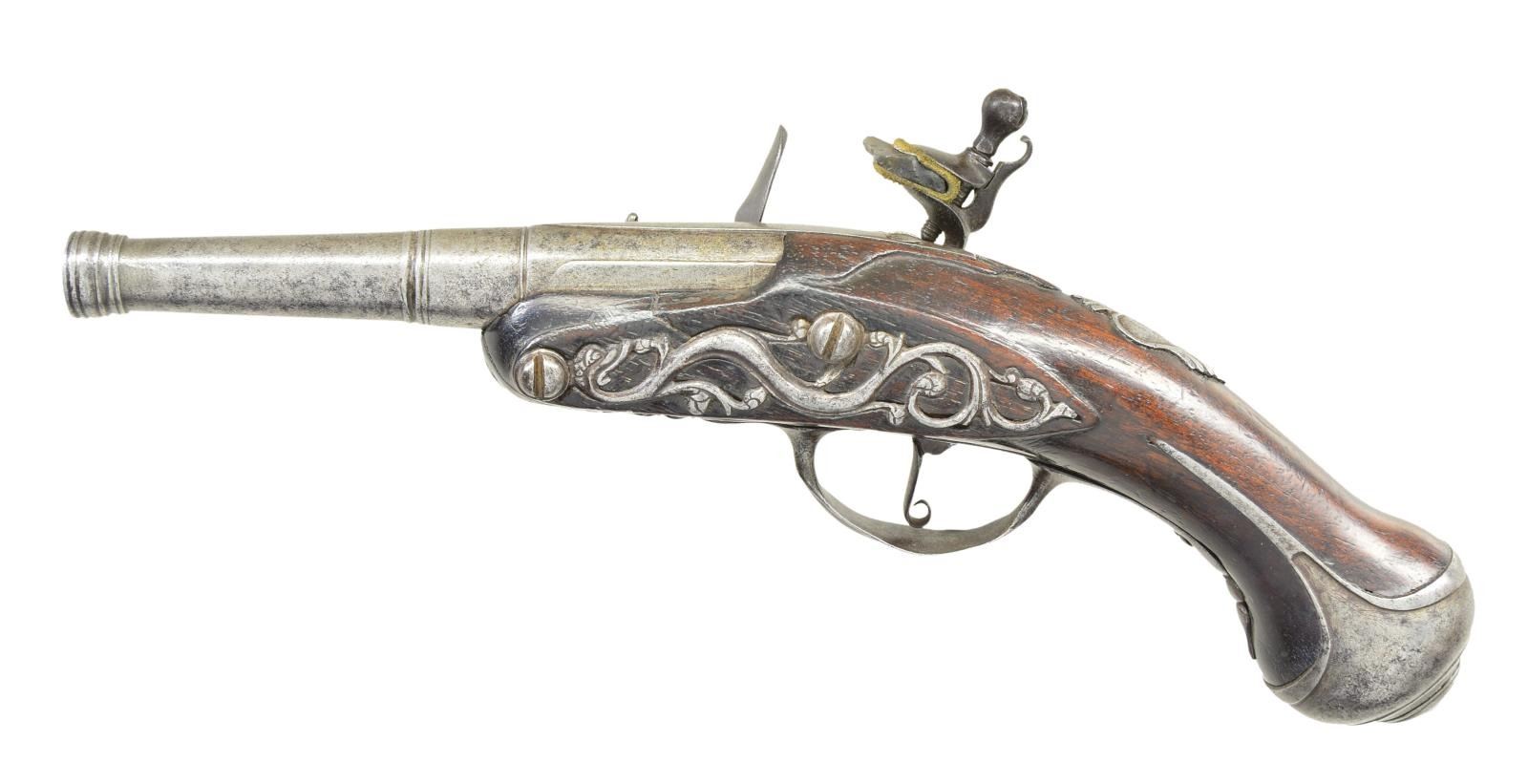 Lot 3583 ENGLISH STYLE CANNON BARREL FLINTLOCK PISTOL.