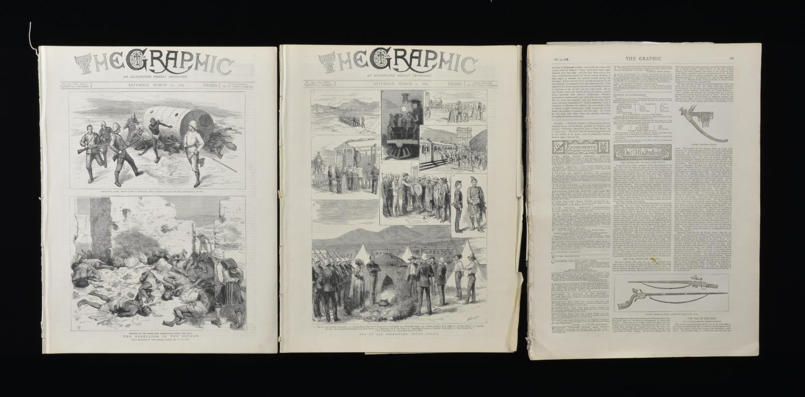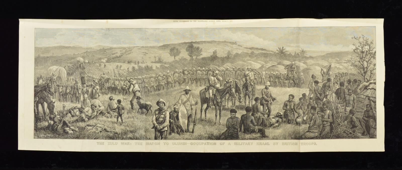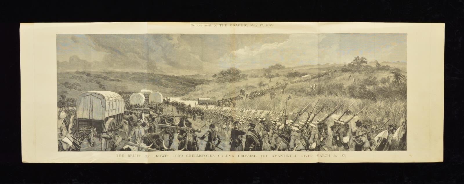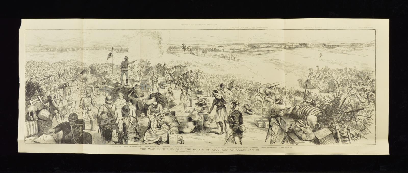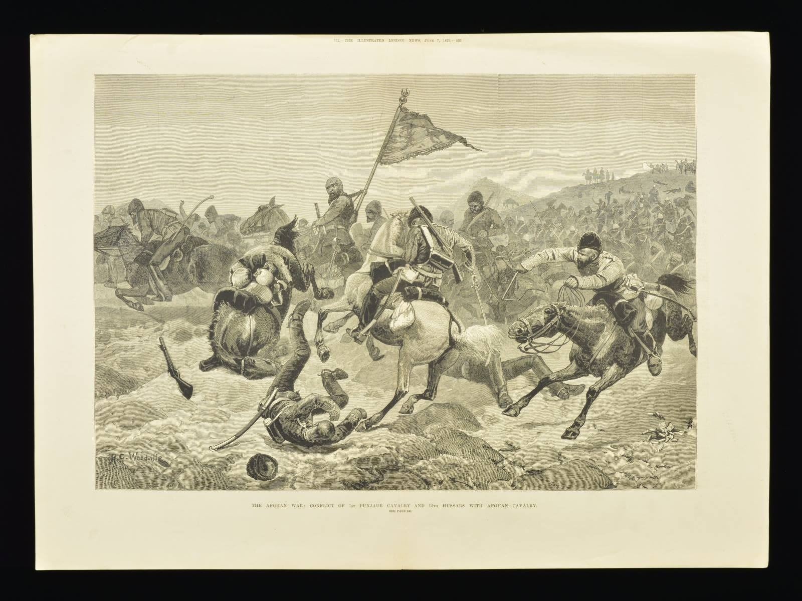 BRITISH MILITARY SCENES THROUGHOUT THE EMPIRE. These wonderful engravings, primarily from the "Illustrated London News” & “The Graphic", are the work of some of the most famous military artists, including Caton Woodvile & Melton Prior. EXTRA LG. SIZE (multiple page) engravings (folded when published) Sudan-“Battle of Tel-el-Kebir”-ILN 9/30/1882 (3 cc) 40"x15". / Sudan- “Battle of Tel-el-Kebir-Over the Trenches” by R. Caton Woodville, ILN 10/7/1882. 4 pages 24 x 31. / War in Soudan: “Battle of Tamasi, Gallant Recapture of the Guns” by W.H. Overread, ILN Extra Supplement 4/12/1881, 5 pages, 16" x 46". / War in Soudan: “Battle of Abou Kru, June 19”: by Melton Prior, ILN Supplement 3/7/1885, 5 pages, (2 copies), 16" x 46". / Zulu War: “March to Ulundi- Occupation of the Military Kraal by British Troops”, ILN 8/9/1879, Extra Supplement, 5 pp, 16" x 45". / Zulu War: “Relief of Ekowe: “Lord Chelmsford’s Column Crossing the Amalkulu River, March 31, 1879”, Graphic Suppl., 5/17/1879, 5 pp., 16" x 47". DOUBLE PAGE SIZE engravings (all about 16" x 21") (11" x 16"- folded size- folded when published): Afghan War: "15th Hussars" and Afghan cavalry battle by R. Caton Woodville, ILN 6/7/1879, (2 copies). / Afghan War: “An Attack in the Khooram Valley” by R. Caton Woodville, ILN 2/8/1879 Extra Supplement. / Afghan War: “The Charge of the Bengal Lancers at the Battle of Dehouruh” by S. Charlton, Graphic 5/24/1979. / Zulu War: “Capture of Sirayos’ Stronghold, January 12”, ILN 3/1/1879. / Zulu War: “Scene of the Battle of Isandula: With Lord Chelmsford’s Advancing Column”, ILN 3/1/1879, (2 copies). / Zulu War: “Retreat of Fugitives’ from Isandlwana Across the Buffalo River” by S. Durand, ILN 3/29/1879 (2 copies). / “The March to Ekowe-Relief Column Crossing a Drift” bay Melton Prior, ILN 5/17/1879. / Zulu War: “Relief of Ekowe, Battle of Ginghilova The Zulus Attacking Lord Chelmsford’s Camp, April 2”, ILN 5/17/1879. / Zulu War: “Battle of Kambula Hill” by Melton Prior, ILN 5/24/1879 (2 cc). / Zulu War: Destruction of Dabulamanzi’s Kraal, April 4” by C.E. Fripp, Graphic 6/7/1879. / Zulu War: “Battle of Ulundi: Inside the Square” by Melton Prior ILN 8/23/1879 (4 copies) (plus article about this scene & artist Melton Prior). / Zulu War: “The Burning of Ulundi” by Melton Prior, ILN 8/23/1879 (3 copies). / Zulu War: “Lord Chelmsford’s Last Victory: Ulundi. July 4, 1879” by S. Durand, Graphic 8/23/1879 (4 copies). / Zulu War: “Advance of the British Troops on Ulundi” by Melton Prior, ILN 8/30/1879, (3 copies). / War in Egypt: “Reconnaissance in Force at Kindji Osman on Aug. 5- Charge of the 60th Rifles” by H. Overend, ILN 8/19/1882. / War in Egypt: “Surrender” by R.Caton Woodville, Extra Suppl. ILN 9/16/1882. / Sudan: “Blue Jackets to the Front” by W. H. Overend, (color tinted, as published), Extra Suppl., ILN 3/29/1884, (3 copies). / Sudan: “To the Rescue” (Royal Navy- Meruat Island) by W. H. Ingram (color tinted, as published), Supplement, ILN 3/21/1885 (2 copies). / War in the Sudan: “First Attempt to Take the Town of Metammeh, Jan. 31” by Melton Prior, ILN 3/7/1885. / War in the Sudan: “The Battle of Kerbekan, Feb. 10: Gen. Earle’s Troops Attacking the Enemy” ILN 3/21/1885, (2 copies). / WAR IN THE SOUDAN: “A Night Attack at the Camp at Souakin” by R. Caton Woodville, Supplement, ILN 4/4/1885. / War in the Sudan: “The Fight of Sunday, March 22 at McNeill’s Zereba” by R. Taylor, ILN 4/18/1885, (2 copies). / Sudan: “Trying the Range: A Sketch on Board a Man-of-War” by W. H. Overend, ILN Extra Supplement 3/8/1884. / South African Warfare- artillery, ILN 2/22/1879. / Matabili War in S. Africa: “Attack on the Laager of Wagons” by R. Caton Woodville, ILN 12/9/1893. / War in the Desert: “A Running Fight” by R. Caton Woodville, ILN 2/7/1885. ZULU and SUDAN WARS - Single page size (all 11" x 16"): End of the Zulu War: “Mounted Infantry Skirmishing with Zulus”, ILN 10/4/1879, (2 copies). / War in the Soudan: 2 scenes before battles of Tamanieb and Tamasi- sketches by Melton Prior, ILN 4/19/1884. / War in the Soudan: “Stampede of Baker Pasha’s Army from the Battlefield to the Shore at Trinkitat February 4”, ILN 3/1/1884. / War in the Soudan: "Battle of El Teb", 2 sketches by Melton Prior, ILN cover 3/22/1884. / War in the Soudan: “Battle of El Teb, Feb. 29: Storming of First Fort by the Gordon Highlanders”, sketch by Melton Prior, ILN 3/22/1884. / War in the Soudan: “Battle of El Teb, Feb 29: Naval Brigade in Action”, sketch by Melton Prior, ILN 3/22/1884. / War in the Soudan: “The Cavalry Charge at the Battle of El Teb, Feb, 29”, sketch by Melton Prior, ILN 3/22/1884. CRIMEAN WAR - 1854-Single page size (all 11" x 16"): “Plan of the Battle of the Alma”, ILN 10/28/1854 (2 scenes on page). / “The Seige of Sebastropol: General View”, ILN 11/18/1854. / “The Action at Balaclava: October 21 First Charge of Heavy Cavalry”, ILN 11/18/1854, (2 copies). / Multi Page Sections of “The Graphic” newspaper (all 11" x 16"- folded size) (folded when published): 2/16/1878 (8 page section of newspaper), including H.M.Stanley’s Anglo- American African Expedition (double page illustration- 16 x 22). / 3/1/1884 (22 page section of newspaper) incl. Defeat of Baker Pasha at Teb in Attempt to Relieve Tokar“ (Sudan-5 pg. illustration-approx.16 x 46). / 3/22/1884 (23 page section of newspaper) incl. Soudan War: Second Battle of El Teb, (double page illustration, 16 x 22) and other military illustrations, plus 2 pg. illus. of the Expulsion of the Quakers from MA,1660. / 3/29/1884 (23 page section of newspaper), incl. Soudan War: “19th Hussars Charge at El Teb, February 29”, (double page illustration, 16 x 22) and other military illustrations. / 2/23/1878 (79 page section of newspaper) incl. 2 double page (16" x 22") illustrations of scenes of Mr. H.M. Stanley