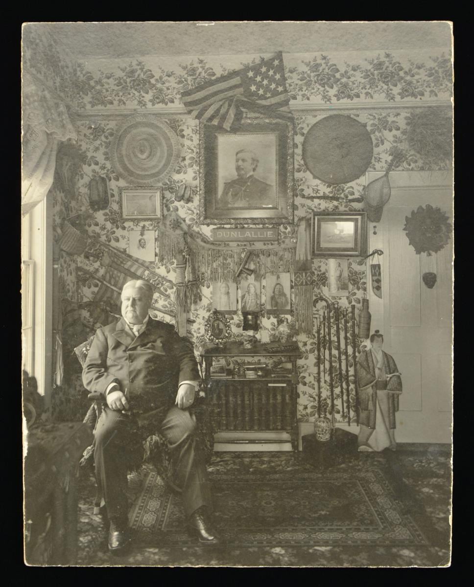 MCDOUGALL SWORDS & ARCHIVE. Captain Thomas Mower McDougall, Custer's 7th Cavalry was bringing up pack train in rear of battle on that eventful day in June 1876 at Little Big Horn. McDougall is among the most famous of survivors of Battle of Little Big Horn. Much has been written about the battle and him. Thomas went on to complete a long military career retiring in 1904. He had a wall of his Indian War memorabilia including the officer’s saber and Indian decorated sheath. That wall is shown in original photograph with an aged McDougall (accompanying this lot).
