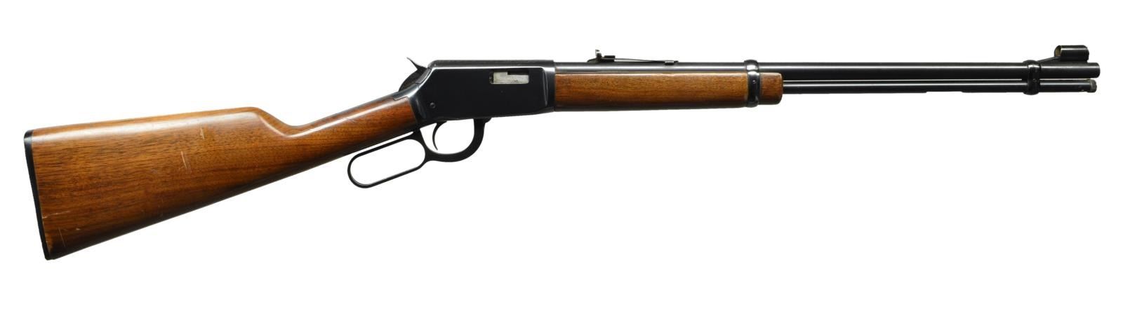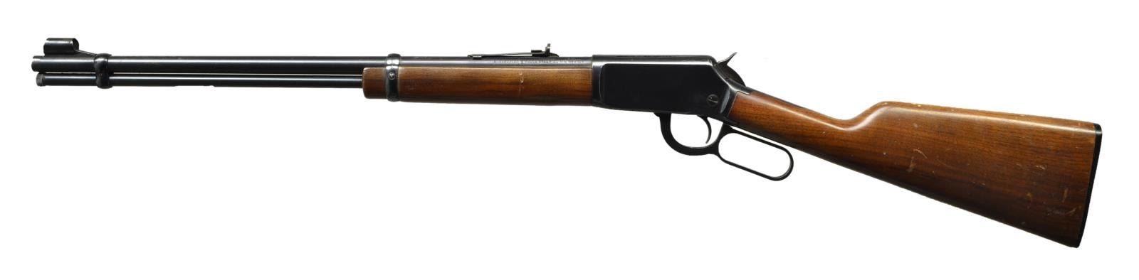 Cal. 22 magnum. S# F141694. Bbl. 20" with hooded ramp front sight and sporting rear sight. Tubular mag. Walnut stock set with original buttplate. CONDITION: 80% lightly worn blue. Wood finish shows numerous scratches, dents and marks. Very good bright bore. (21-4062/DS). MODERN. $400- 600.