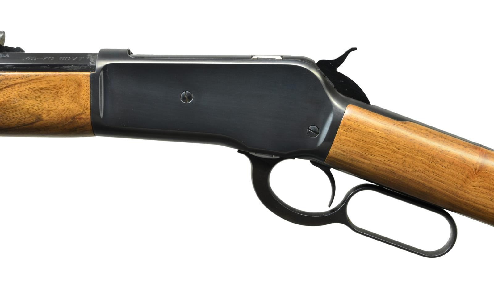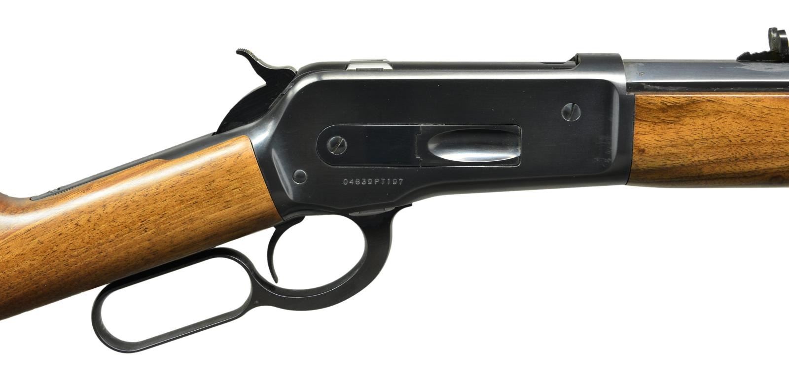Cal. 45-70. S# 04839PT197. Bbl. 26" octagon with sporting sights. Full length mag. Blue finish. Walnut stock set with crescent steel buttplate. Limited edition of 7000, mfg in 1986. UNATTACHED ACCESSORIES: original box and shipping sleeve containing owners manual. CONDITION: near new with box retaining virtually all finishes near excellent bore. (21-4133/DS). MODERN. $2000-2750.