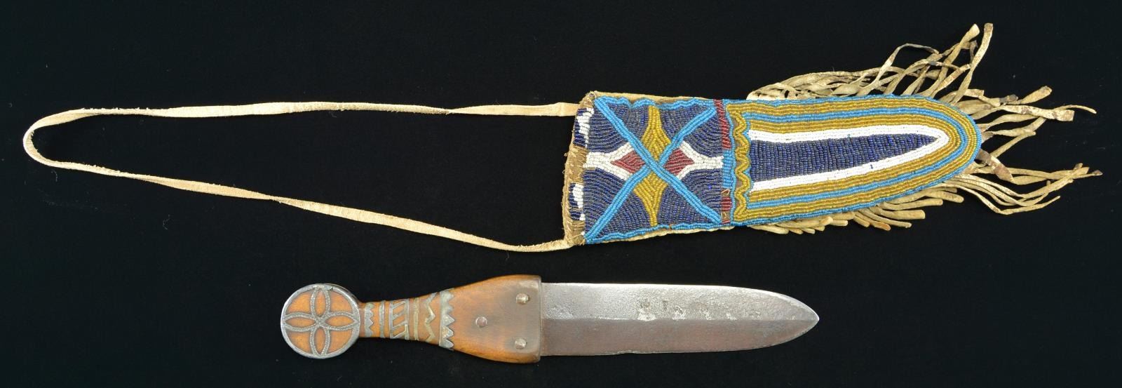 Lot 4498 BLACKFEET INDIAN BEADED KNIFE SHEATH & DAG KNIFE.