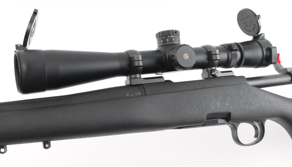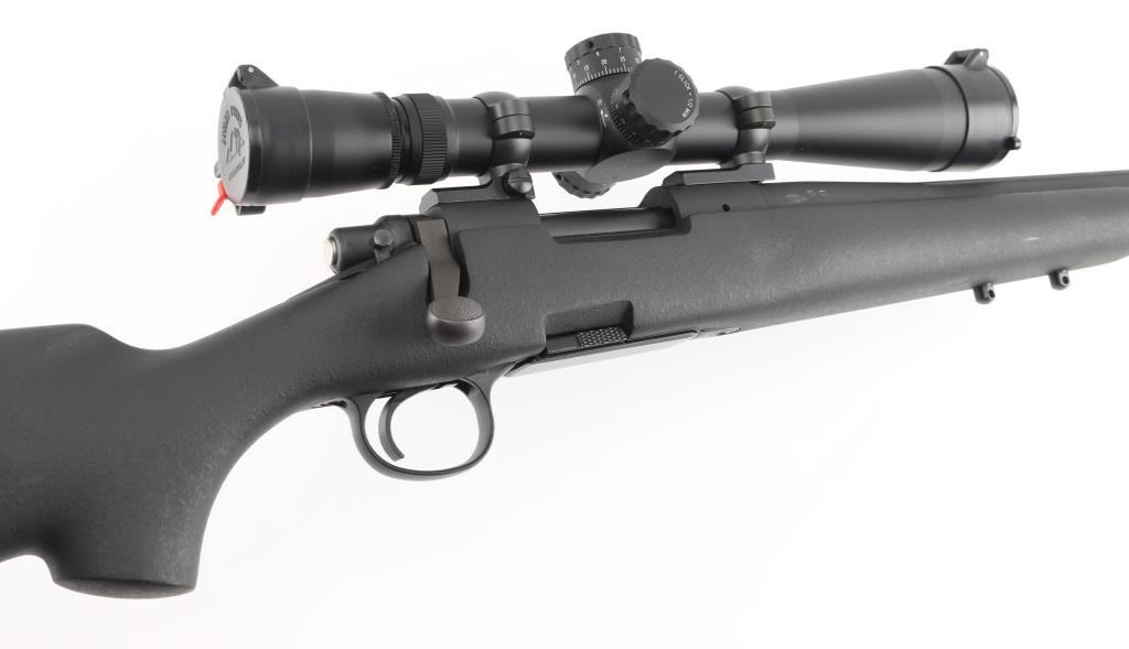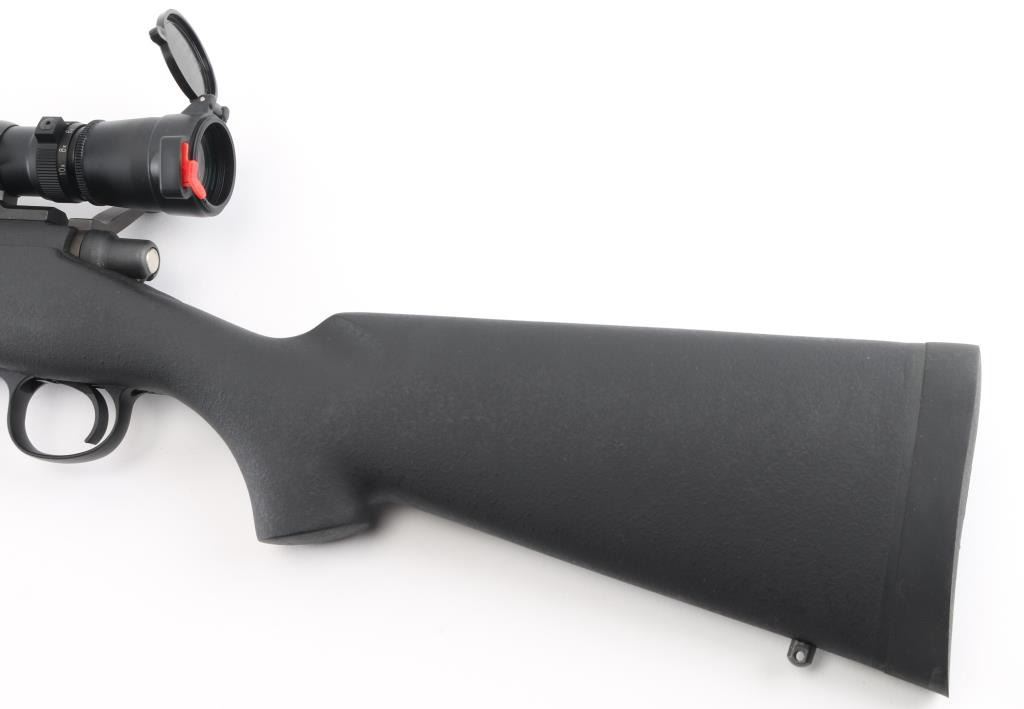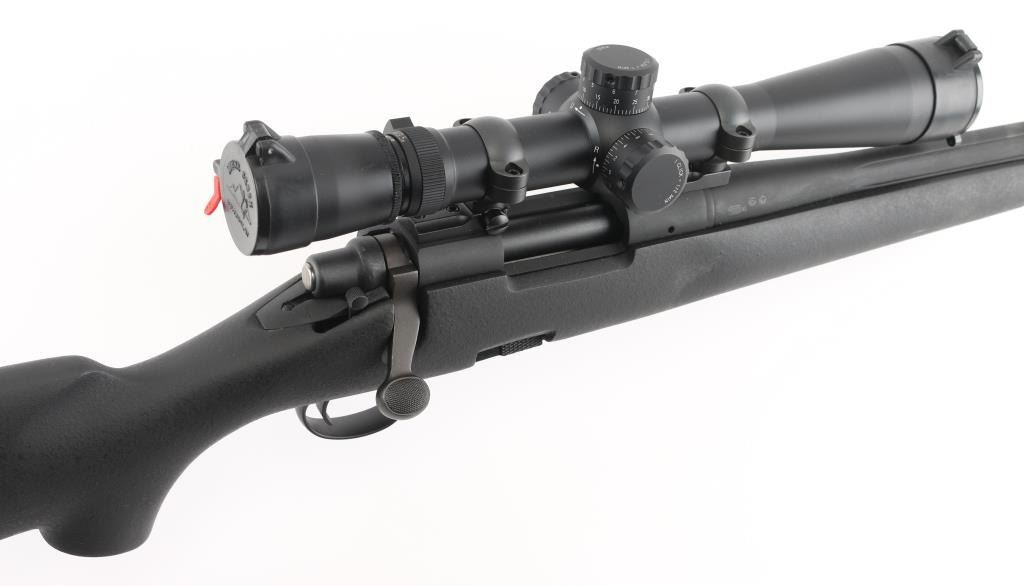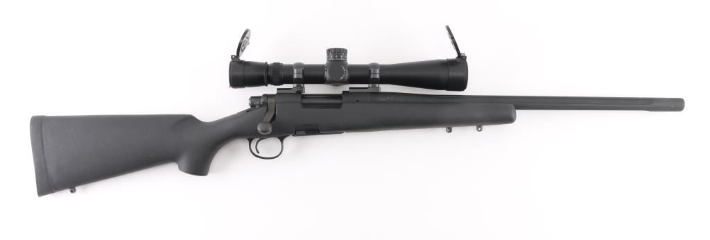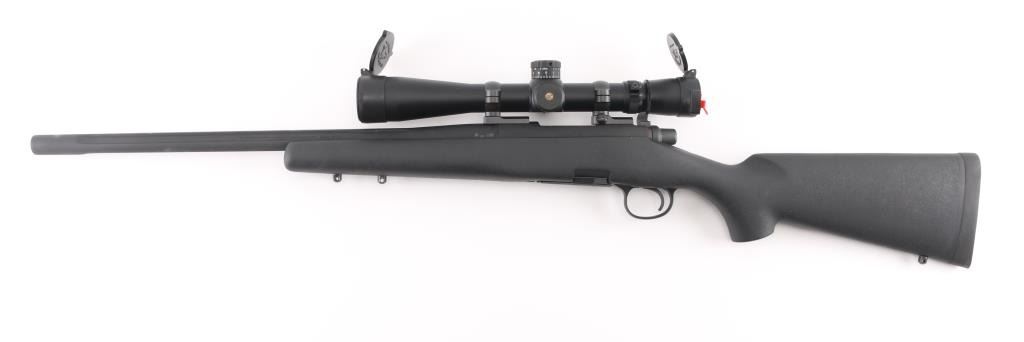 Bolt action sporting rifle features matte black parkerized finish, black composite stock, 20" fluted medium contour barrel, detachable magazine, manual safety, sling studs (two under forearm, one under butt), solid rubber recoil pad, blued Leupold two piece bases with rings. Mounts a Leupold Vari-X III 3.5-10x40mm scope with duplex reticle, side focus. Bore is very good condition. Retains 95% finish with minor scuffs, other handling marks. Stock is excellent. Scope is very good condition with bright clear view. Includes one magazine. Condition is NRA Excellent *** Modern Firearm ***