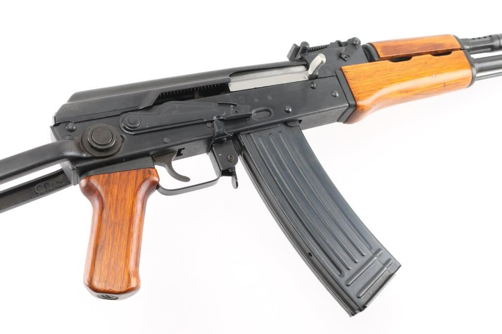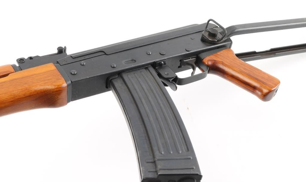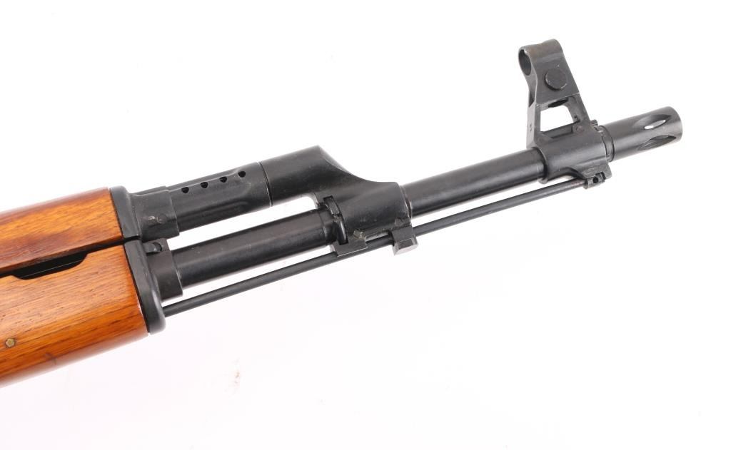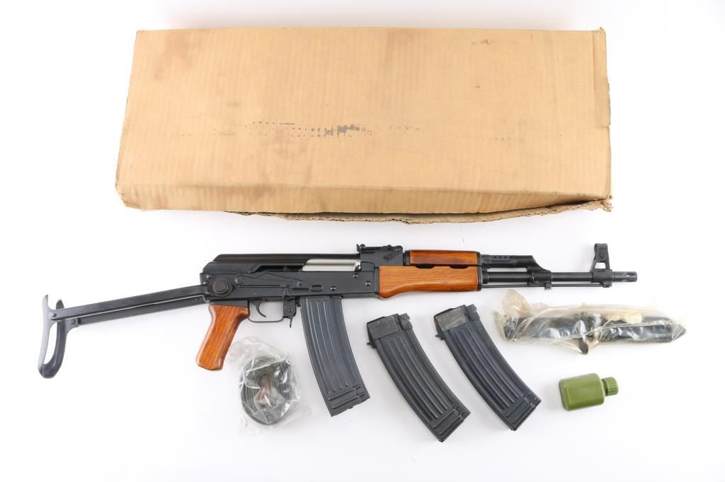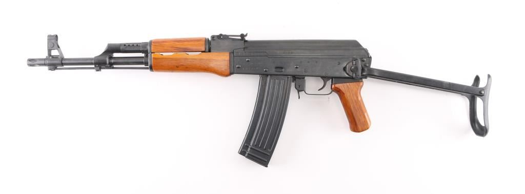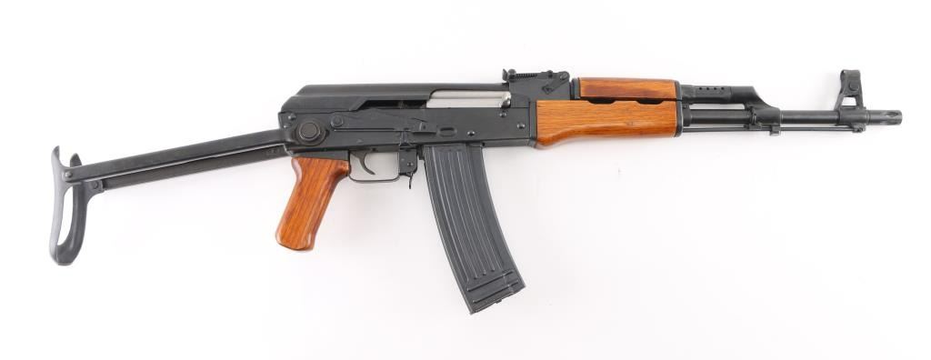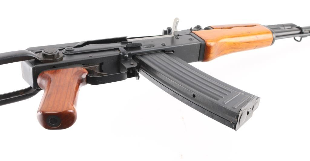 Chinese semiautomatic rifle imported by CSI, LA CA. Base on AK-47/AKM type rifle. Features blued finish, steel under folding stock, smooth wood hand guards & pistol grip, 16" threaded barrel, fluted bird cage flash hider, bayonet lug, cleaning rod under barrel, protected post front sight, tangent rear sight, manual safety, accepts detachable magazines. Bore is excellent condition, hard chrome lined. Retains 95% blue with handling marks. Wood is excellent condition. Includes factory box, bayonet & scabbard, sling, (3) 30 rd magazines. Condition is NRA Excellent *** Modern Firearm ***