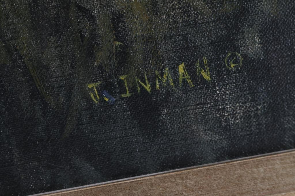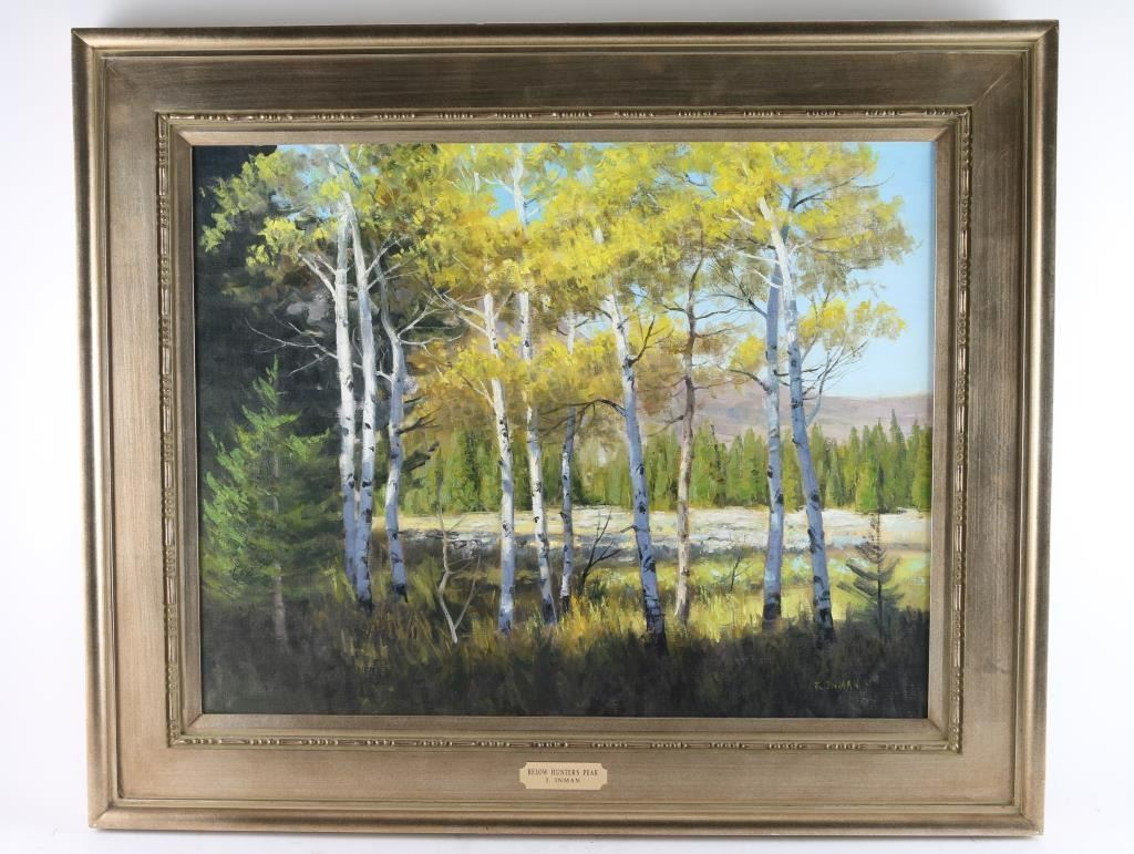 by artist "Jerry Inman" entitled "Below Hunters Peak" framed in sliver wood frame. Signed lower right. Beautiful landscape piece. Image size of 27"x21.5" Bio-Born in 1946 and is known for western landscapes an figures.