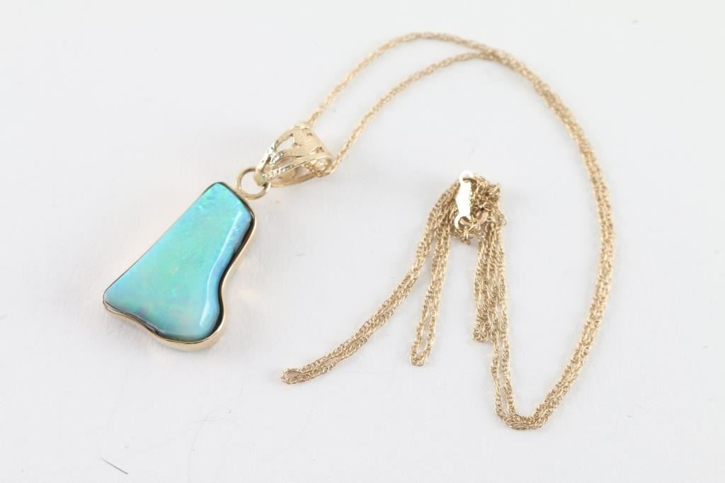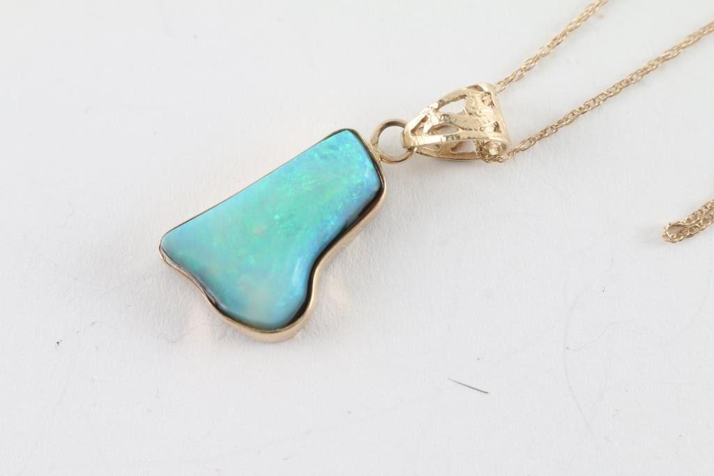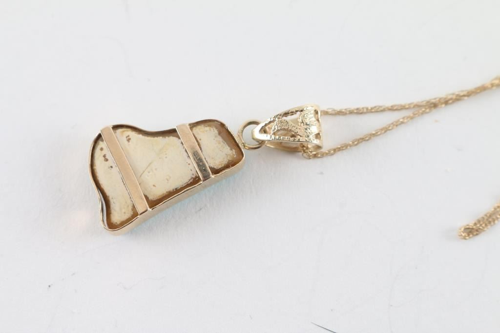 Custom made design , Set in 14K Yellow Gold. 20 millimeters tall, 14 millimeters wide. On 14k Yellow Gold chain. Total weight is 3.25 grams