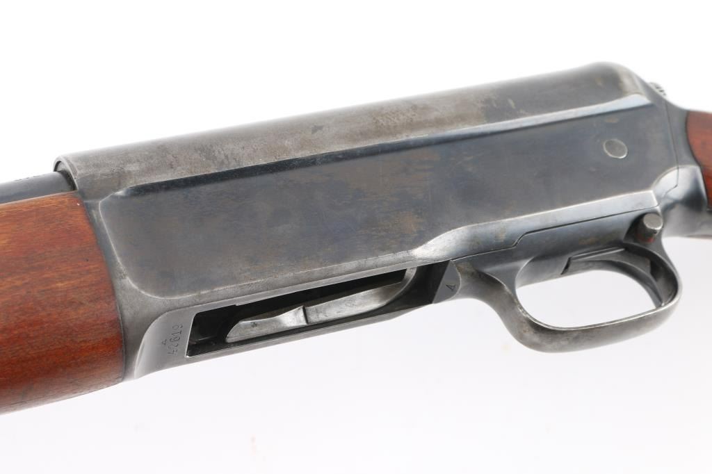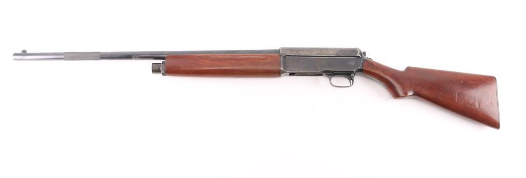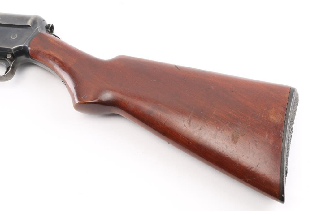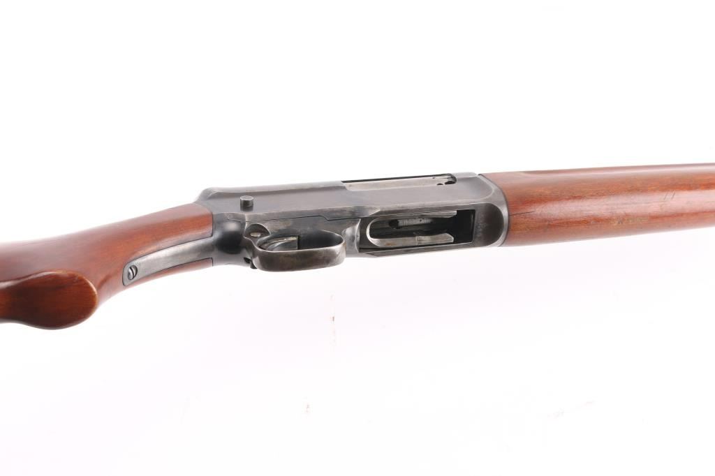 Shotgun. Self-Loading. 5-rd Capacity. "The Widow Maker'. Manufactured 1911-1925. Long recoil action. 26" barrel with blade sight. Fed from tubular magazine. Triggerguard mounted safety. Standard Winchester markings on tang, and barrel. Shotgun charged by pulling back the barrel by the checkered section with it pointed in a safe direction. Some users mistakenly cycled the weapon by placing the butt on the ground, and forcing the the barrel down. In this position, the muzzle would be pointing towards the face of the user, with potential for slam fire. Thus the nickname. There of documented cases of people being killed in this manner. Bore is excellent/bright. Plunger action is a little stiff. Walnut stock/forearm are very good with minor scratches/dents. Bulled finish has dulled somewhat, and is about 50%, with handling wear, mostly on the receiver and tangs. NRA condition-Good. C&R Firearm.