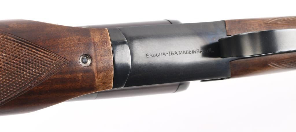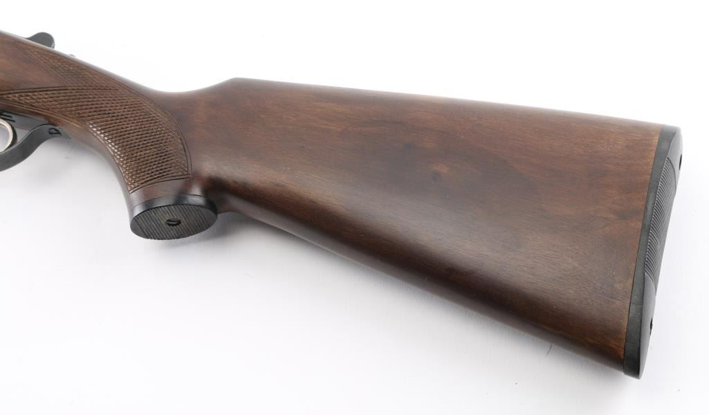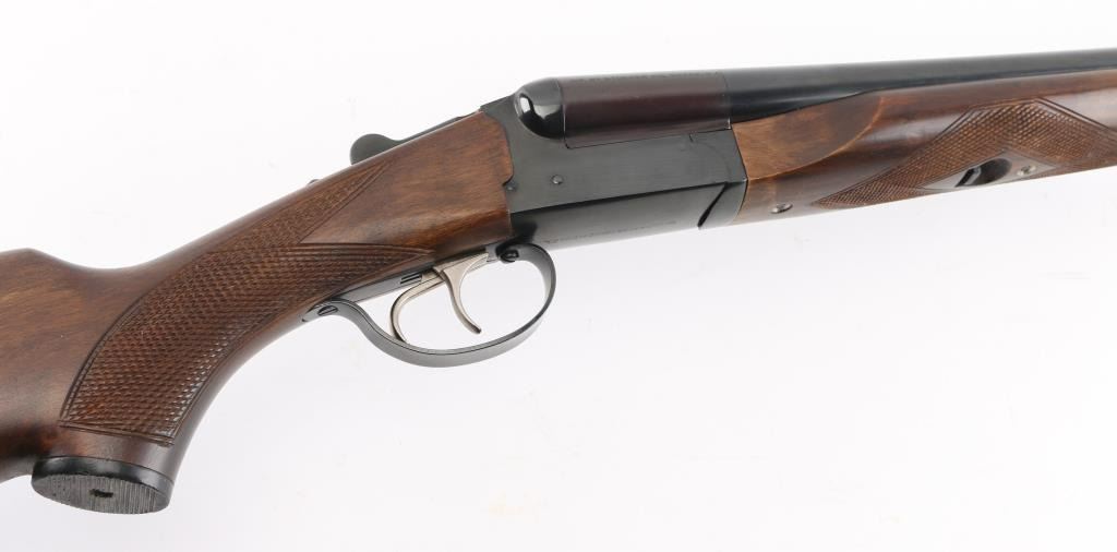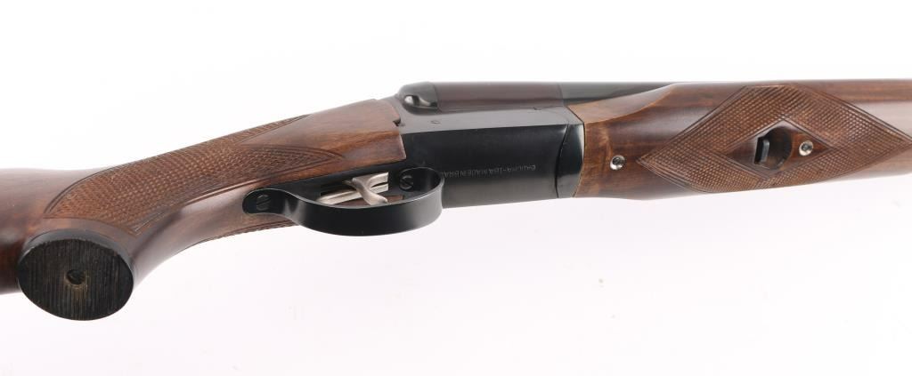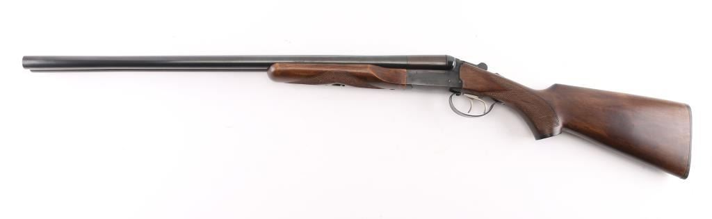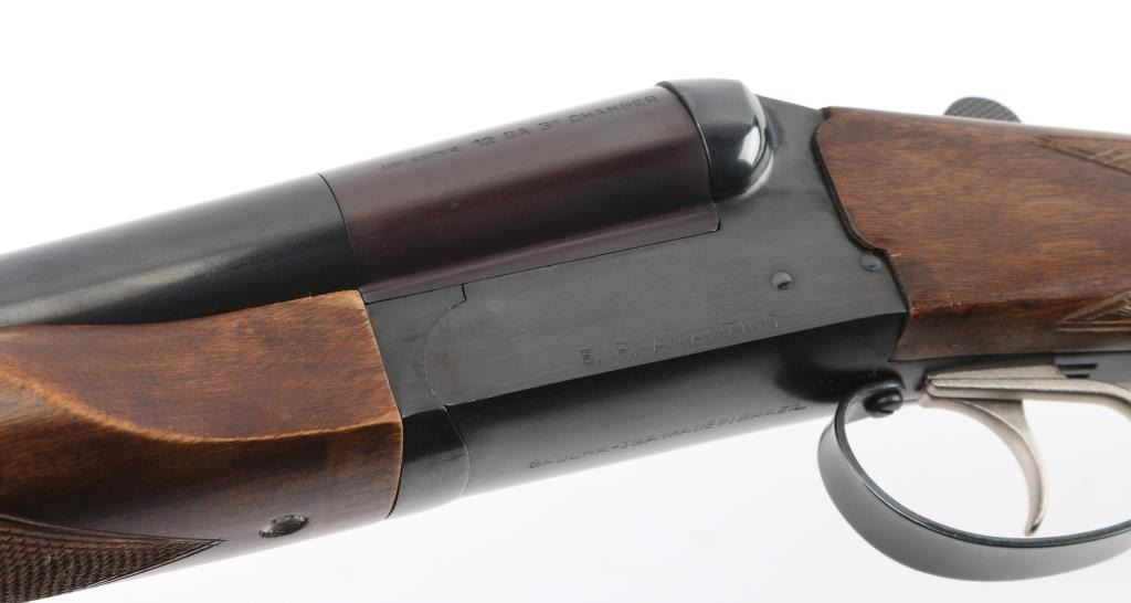 Double barreled side-by-side shotgun made in Brazil by E.R. Amantino (also known as Boito), imported by Stoeger, Wayne NJ. Features box lock, blued finish, 26" barrels with choke tubes (Mod (L) & IC (R) installed), low matted rib, brass bead front sight, double triggers, knurled top lever, sliding tang safety, extractor, checkered walnut beavertail forend, checkered walnut semi-pistol grip shoulder stock, serrated black plastic buttplate & grip cap. Accepts 2-3/4" & 3" shells. LOP is 14.5". Barrels numbered to receiver. Bores are very good. Retains 95% finish with minor edge losses, handling marks. Wood is excellent with few blemishes. Condition is NRA Excellent *** Modern Firearm ***
