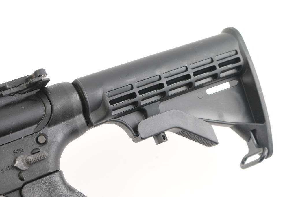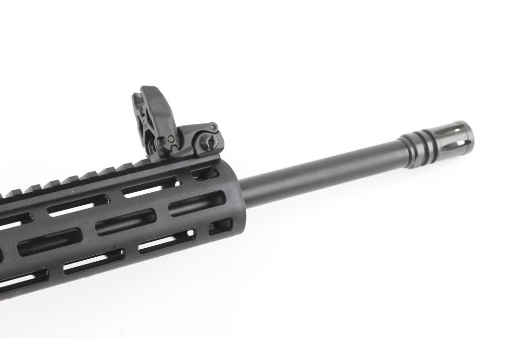 High quality blowback operated semi-automatic rimfire rifle chambered in .22 Long Rifle and stylized like an AR pattern rifle. These are amazing training rifles or plinkers with the same battery of arms as any standard AR pattern rifle. Features an Armornite finished 16.5” barrel, A1 birdcage flash hider, 10” free-floated slim profile M-LOK handguard, Magpul MBUS folding sights, polymer upper & lower receiver with metal inserts, shell deflector, functional charging handle, single stage trigger, two-position selector on the left side of the lower receiver, push button magazine release, factory 25 round magazine, A2 black polymer pistol grip and six-position M4 telescoping shoulder stock. Includes the original factory cardboard box with literature, lock and a 2” detachable M-LOK rail segment. Condition is like NRA Perfect ***Modern Firearm***