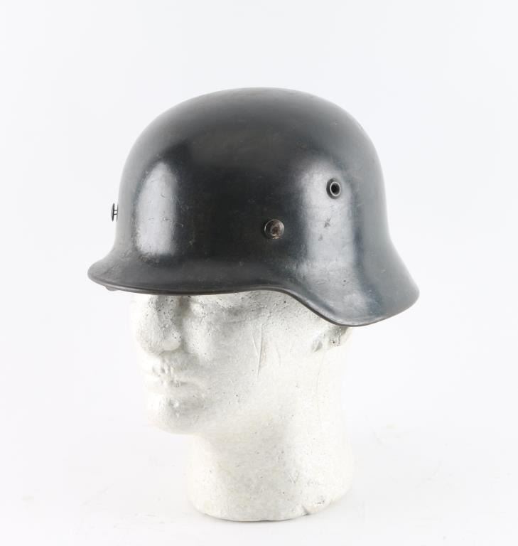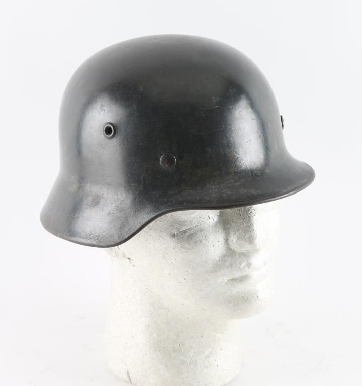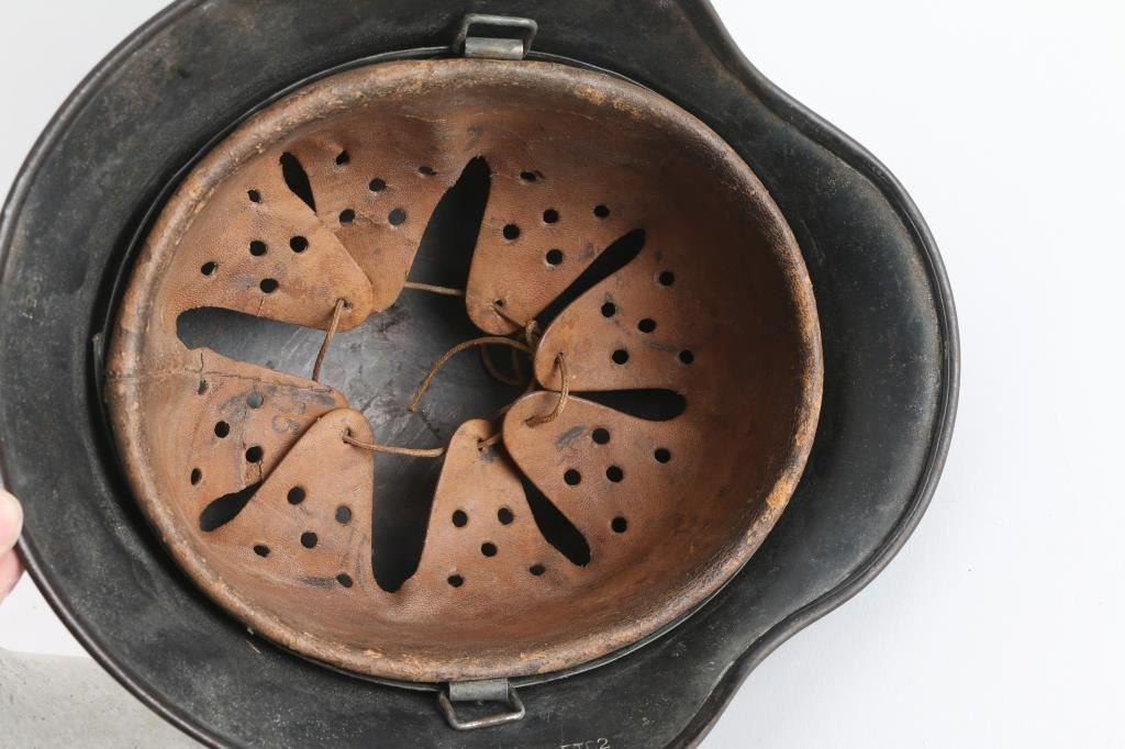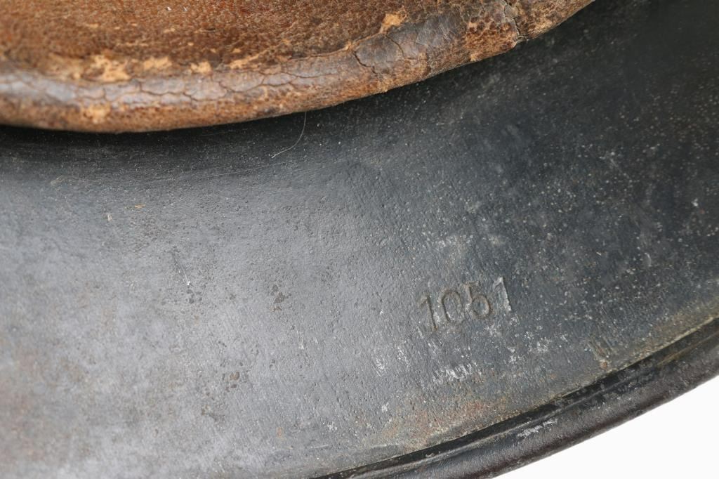 Original Ww2 issued helmet. Paint and liner are very good, skirt stamped '1051' and 'ET62'. No chinstrap. Faint outline where the Luftwaffe eagle once was. Overall very good condition.