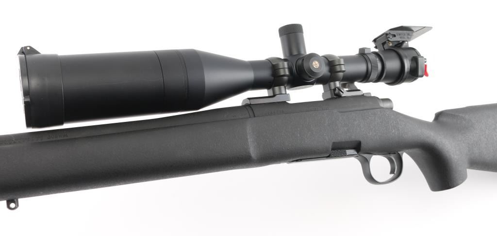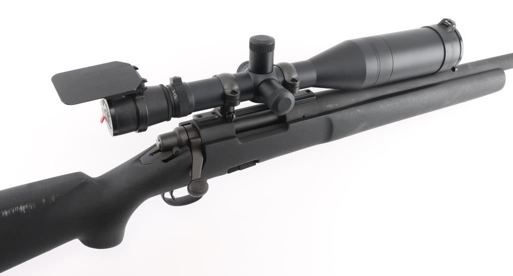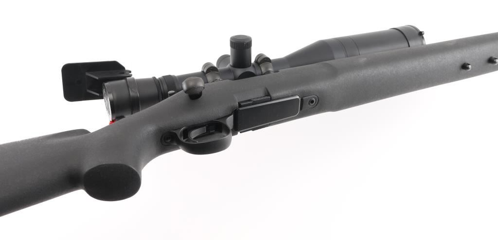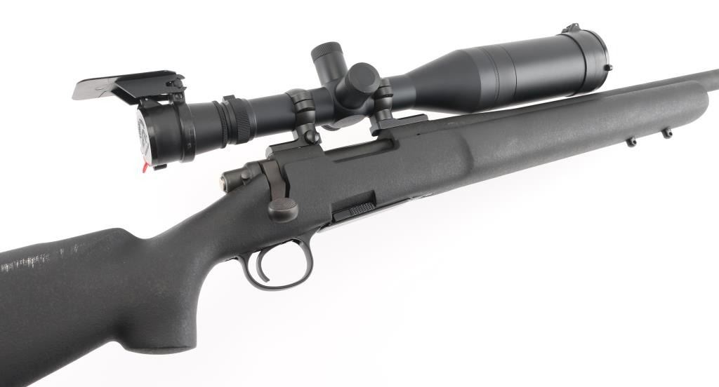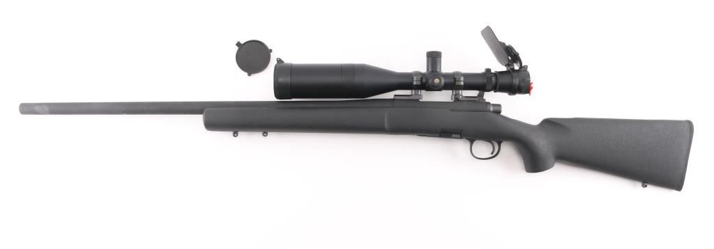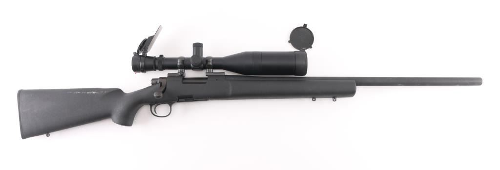 Bolt action sporting rifle features matte black parkerized finish, black composite stock (looks like an HS Precision stock), 26" medium contour barrel, detachable magazine, manual safety, sling studs (2 under forend, one under butt), solid rubber recoil pad, blued Leupold two piece bases with rings. Mounts a Leupold Vari-X III 4.5-14x50mm Long Range scope with duplex reticle, side focus, tall adjustment turrets, flip up caps (front cap hinge broken). Bore is very good condition. Retains 95% finish with minor scuffs, other handling marks. Stock is excellent. Scope is very good condition with bright clear view. Includes one magazine. Condition is NRA Excellent *** Modern Firearm ***