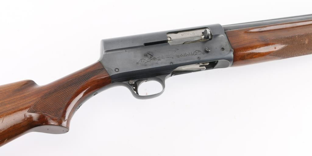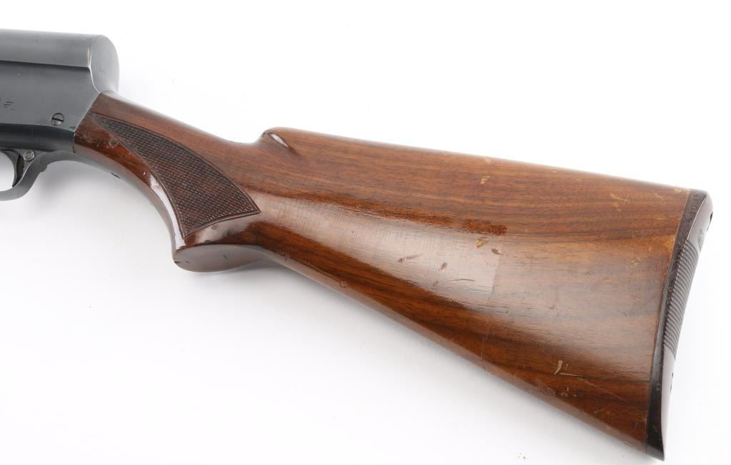 Vintage semiautomatic shotgun manufactured circa 1940. Accepts 2-3/4" or shorter shells. Features blued finish, checkered walnut forend, checkered walnut shoulder stock with flat bottomed curved grip, factory plastic buttplate, 32" barrel marked "FULL" choke, raised solid rib with milled top, steel front bead, push button safety at rear of triggerguard. Bore is very good condition. Retains 90% dark finish with edge losses, handling marks, faded bluing on magazine cap. Factory markings are crisp. "MODEL 11" marking on bolt shows thru ejection port. Wood is very good condition, varnish added, scratched and dented, several small gouges, finish losses across rear portion of butt from previous rubber slip on pad, initials "JS" scratched into finish. Remington buttplate is very good condition, dark chocolate brown color. Condition is NRA Very Good+ *** C&R Firearm ***