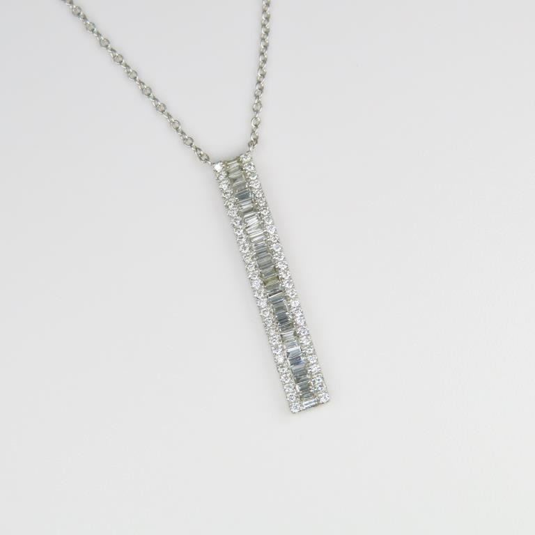 t fine set with over 90 round and baguette cut Diamonds weighing approx. 1.50 carats with F-G colors and VS/SI clarity set in 14 karat white gold setting. Very labor intensive.