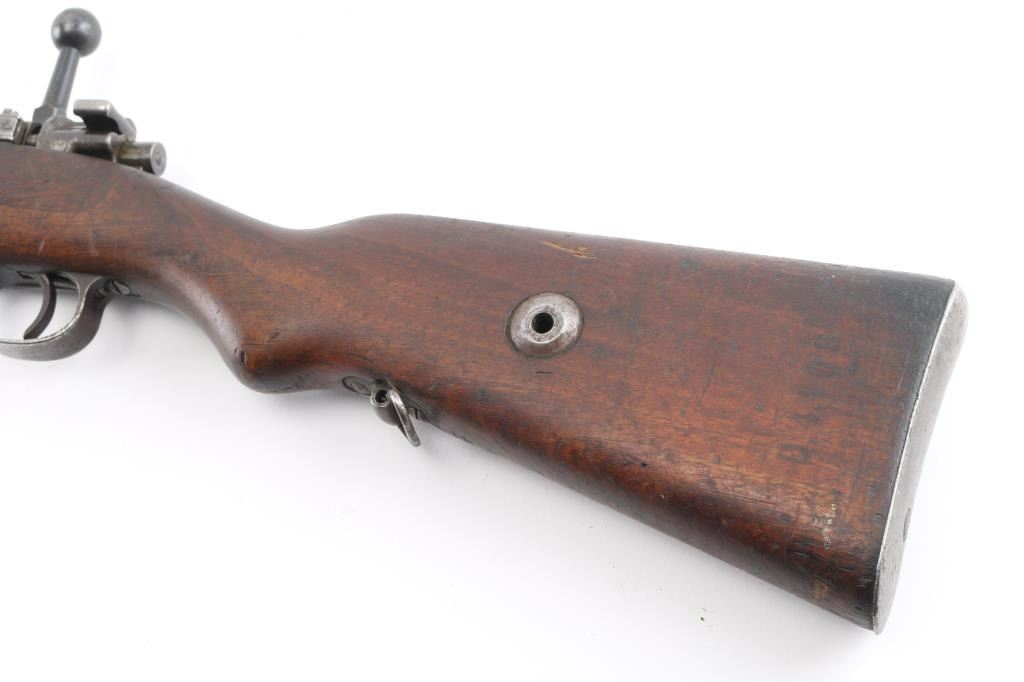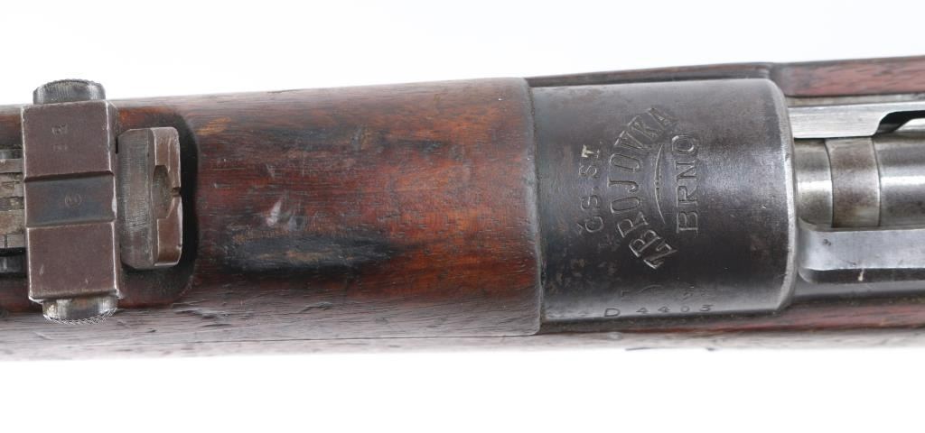 Late 1920's Turkish contract Czech bolt-Action. 5-rd internal box magazine, 29": barrel with serrated ramp, triangle blade front, and tangent rear sights. "H" style front barrel band, "CS,ST. Zbrojovka, Brno" on receiver ring. Czech proofs on receiver and barrel. Serial number mismatched on receiver , floorplate, and rear sight and barrel band, none on bolt..cleaning rod. Imported from Turkey by Navy Arms (Receiver) Bore appears good, strong rifling. Wood stock/handguard are good with the usual dings/scratches. steel buttplate. Blued finish is about 50% with scattered pin-prick pitting, handling loss. Action is crisp/tight. NRA Condition-Good. C&R Firearm.
