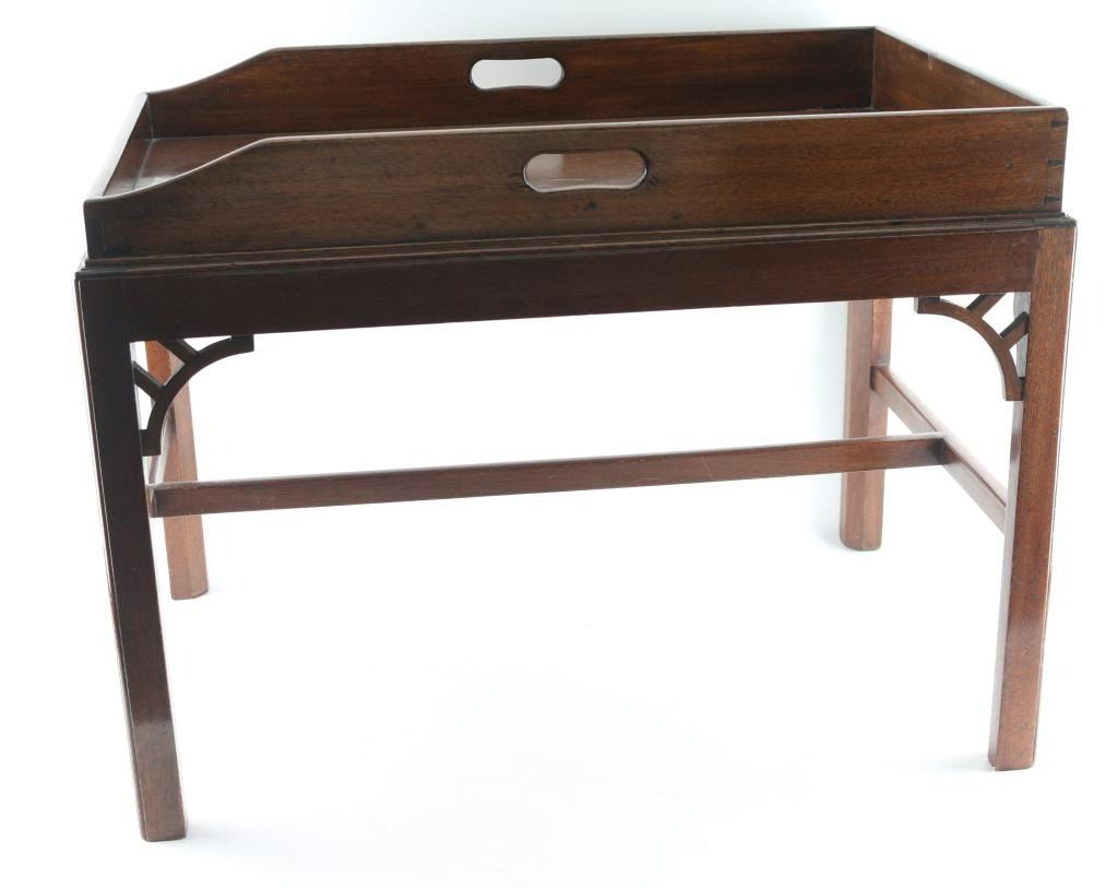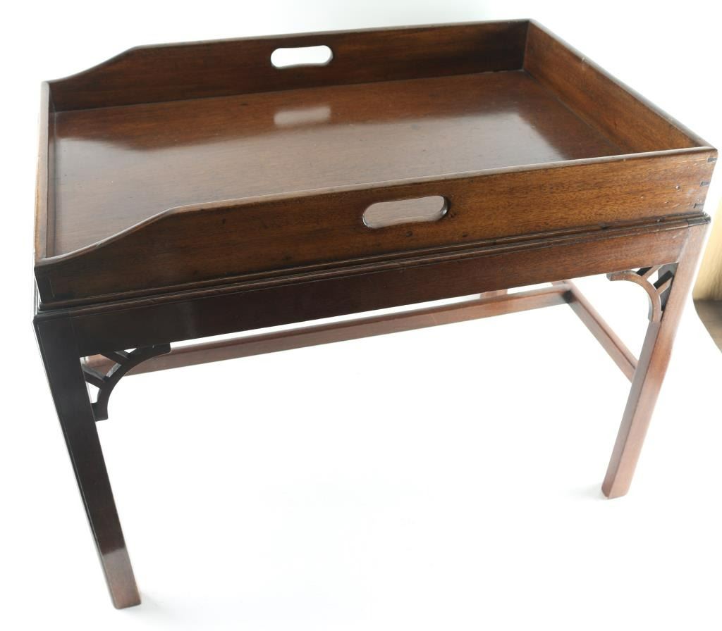 Four legged, with walnut construction. With removable tray top. In beautiful condition.