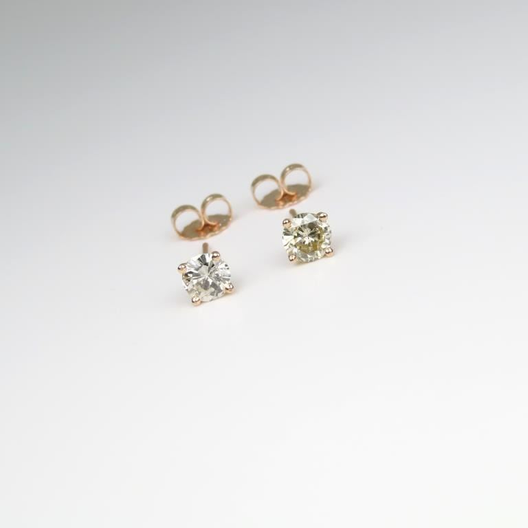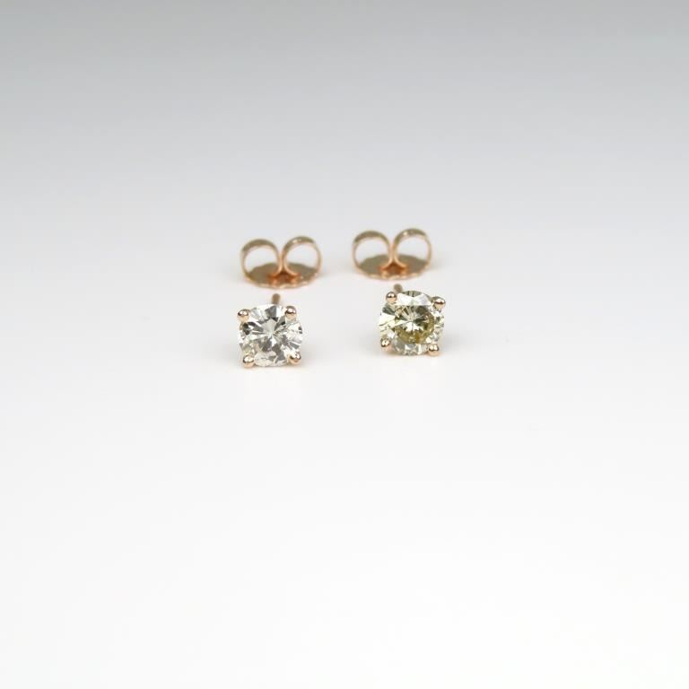 set with 2 round cut Diamonds weighing 0.80 carats with I-J colors and SI clarity set in 14 karat ROSE gold settings.