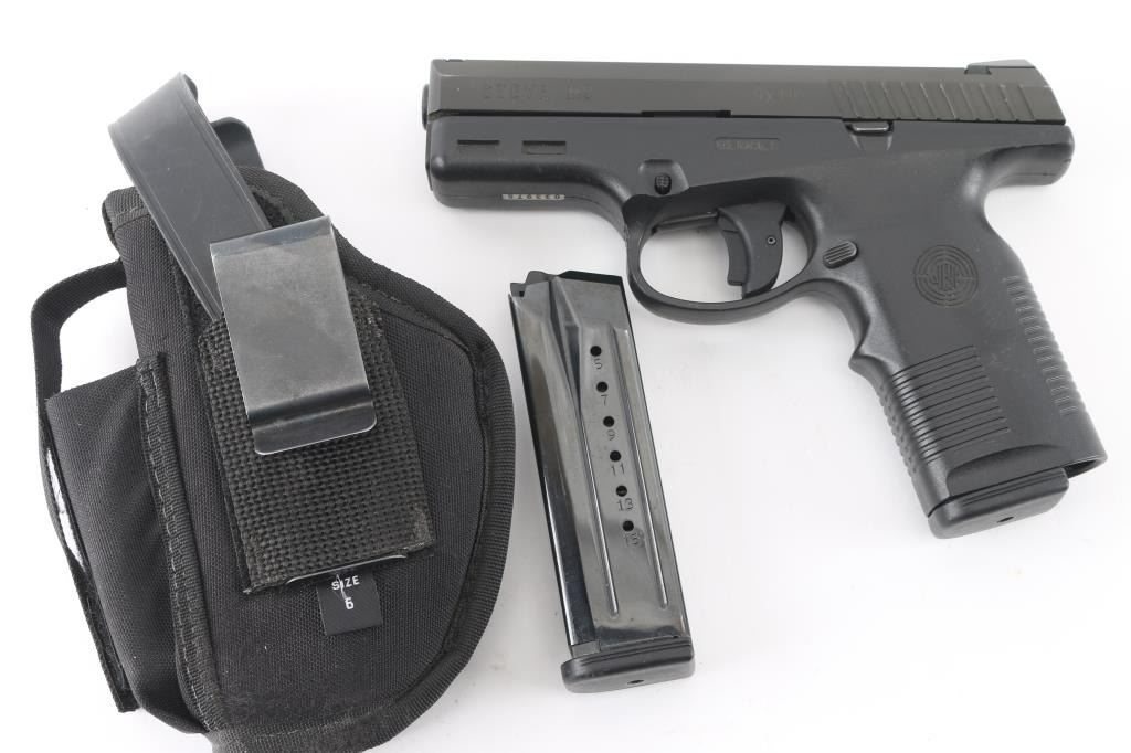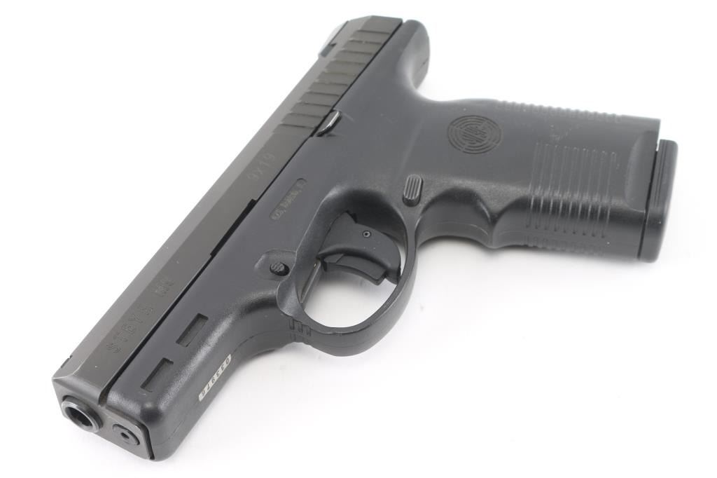 Semiautomatic pistol made in Austria, imported by GZS, Baldwin IL. Features matte black finish, black polymer frame with accessory rail, 4" barrel, triangular shaped sights mounted in dovetails, single action striker fired, manual safety tab in trigger. Bore is very good. Retains 95% finish with edge losses, handling marks. Includes (2) magazines, black nylon holster. Condition is near NRA Excellent *** Modern Firearm ***